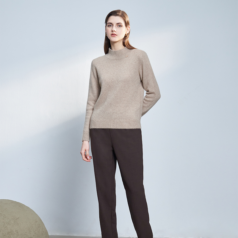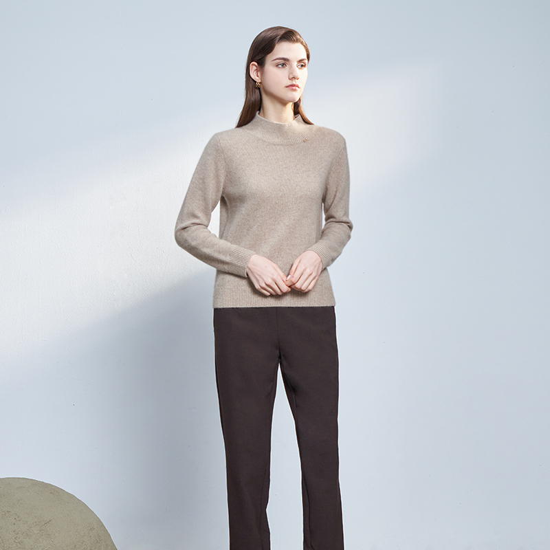 【半价款半高领羊绒衫】羊绒世家秋冬新品女士100%山羊绒衫内搭保暖套头毛衣
