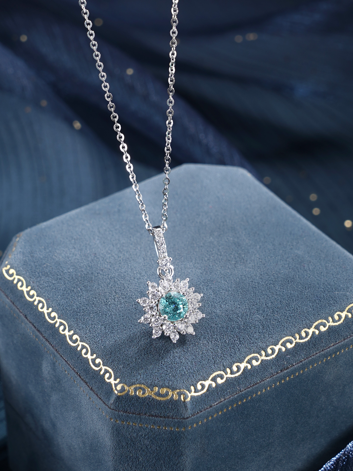 子佩集【阳光花海】S925银套链【PM2289-XF】培育宝石帕拉伊巴蓝碧玺太阳花2510