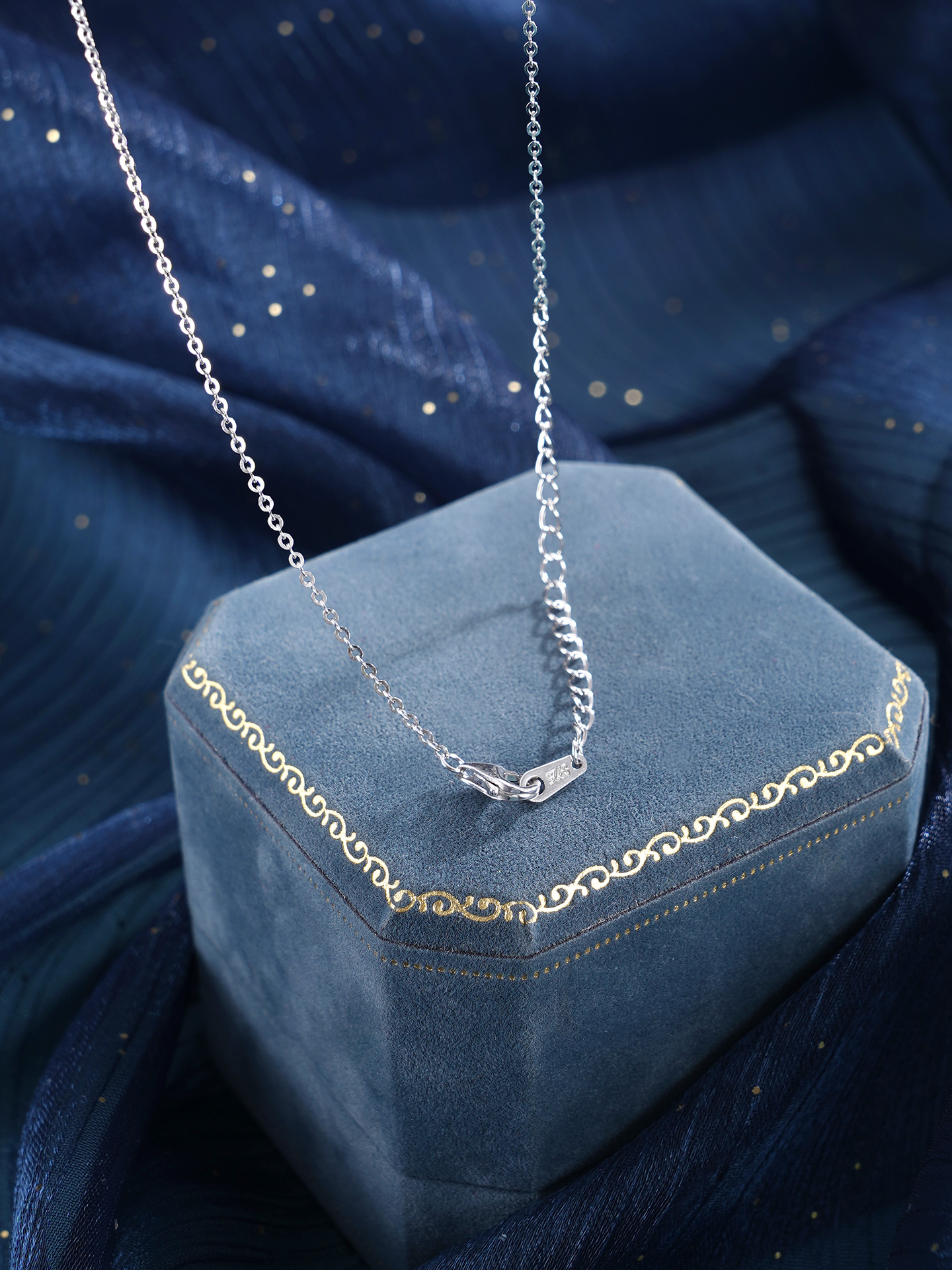 【寓意】:以锆石花朵搭配纯银吊坠,辅以蓝宝石镶嵌,呈现“花海沐阳”的灵动意境。寓意从中获取旺盛生命力,人生一路繁花相伴。