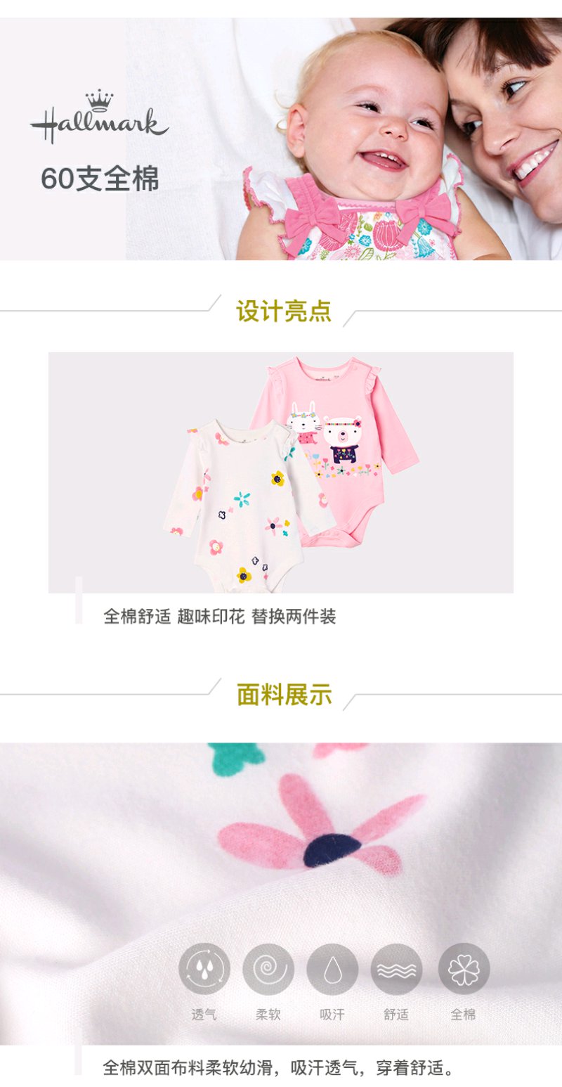 Hallmark贺曼童衣四季女婴儿女宝宝纯棉长袖薄款三角爬包屁衣服两件装HH1F0502