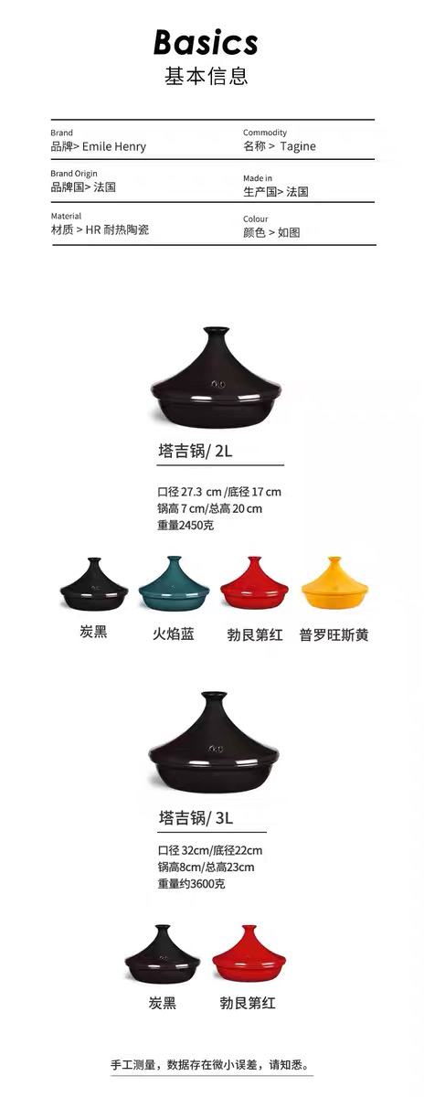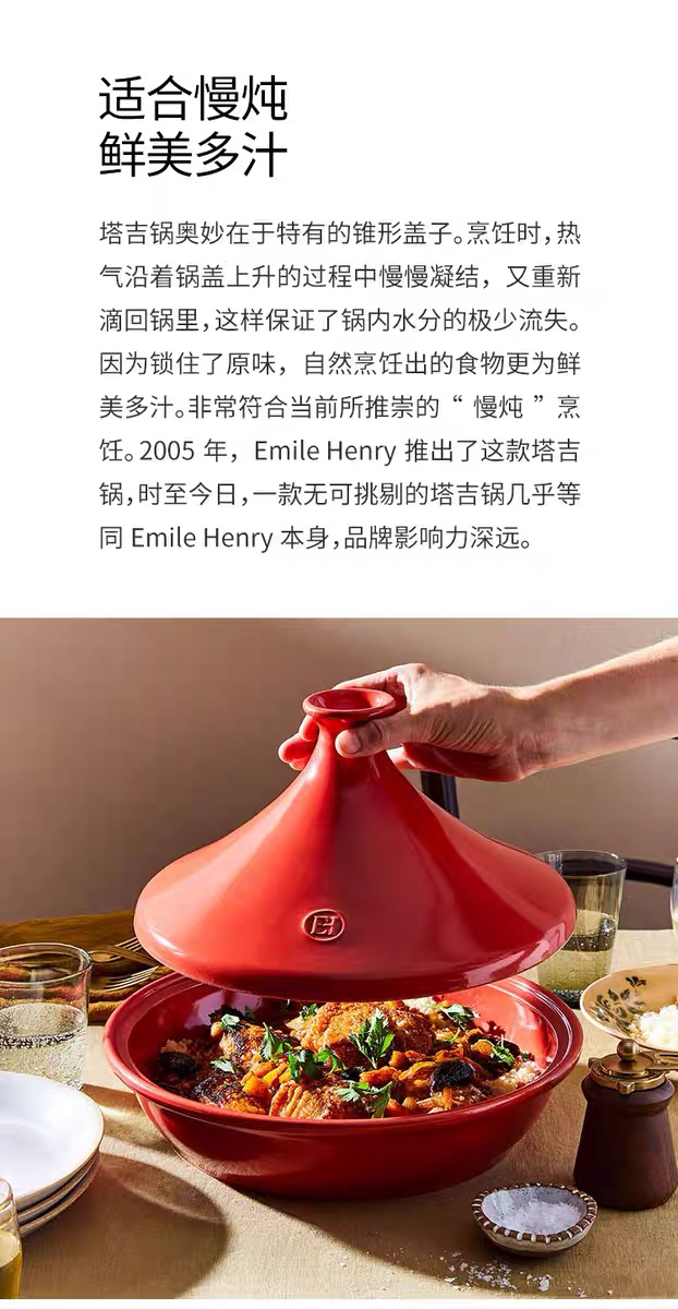 法国Emile Henry进口塔吉锅陶瓷炖锅摩洛哥北欧厨房煲仔饭家用锅
