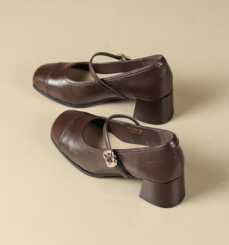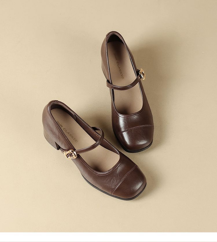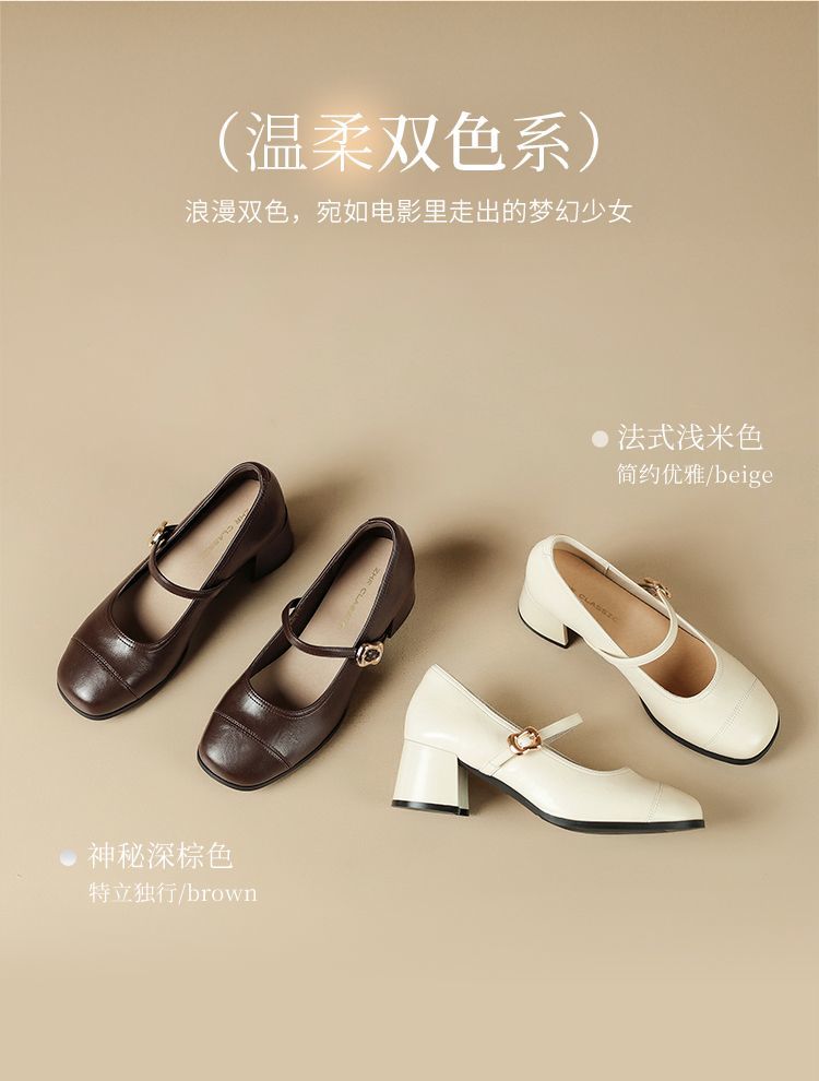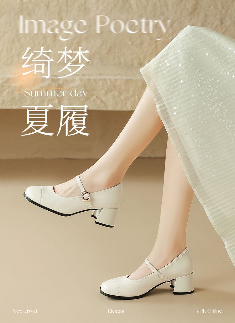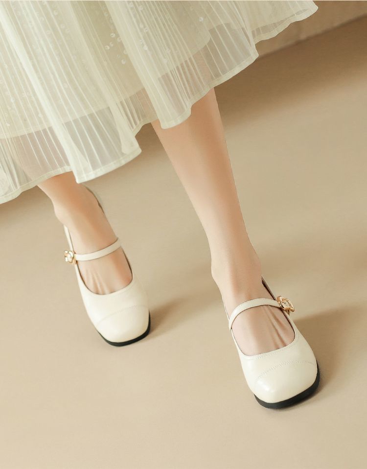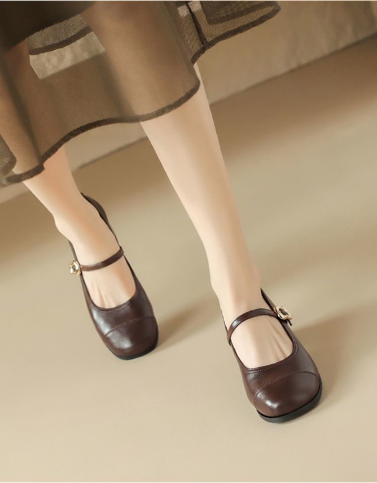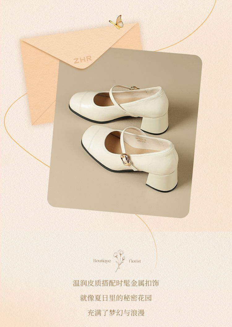 ZHR则则法式一字扣玛丽珍鞋女2025新款方头浅口单鞋软底凉鞋女鞋