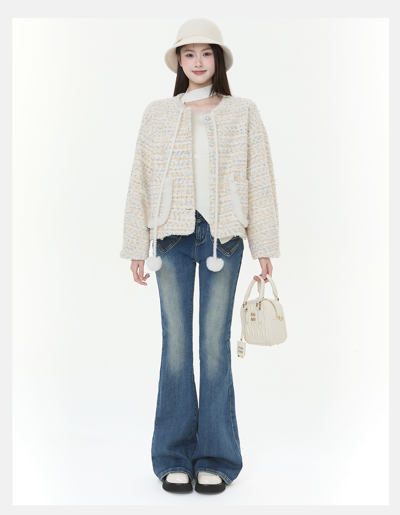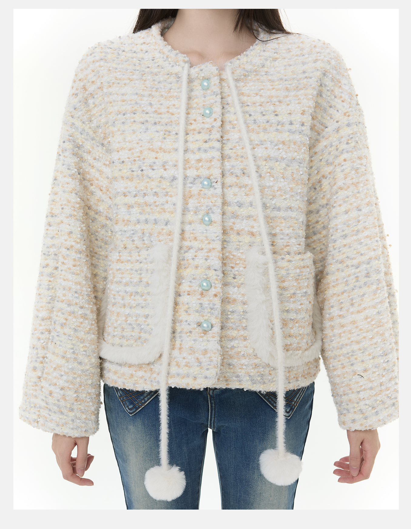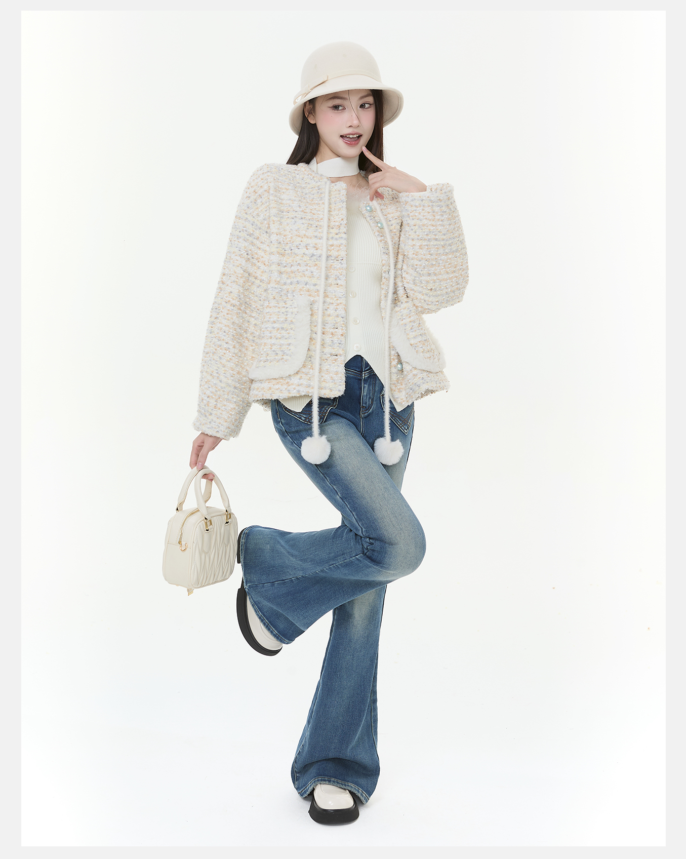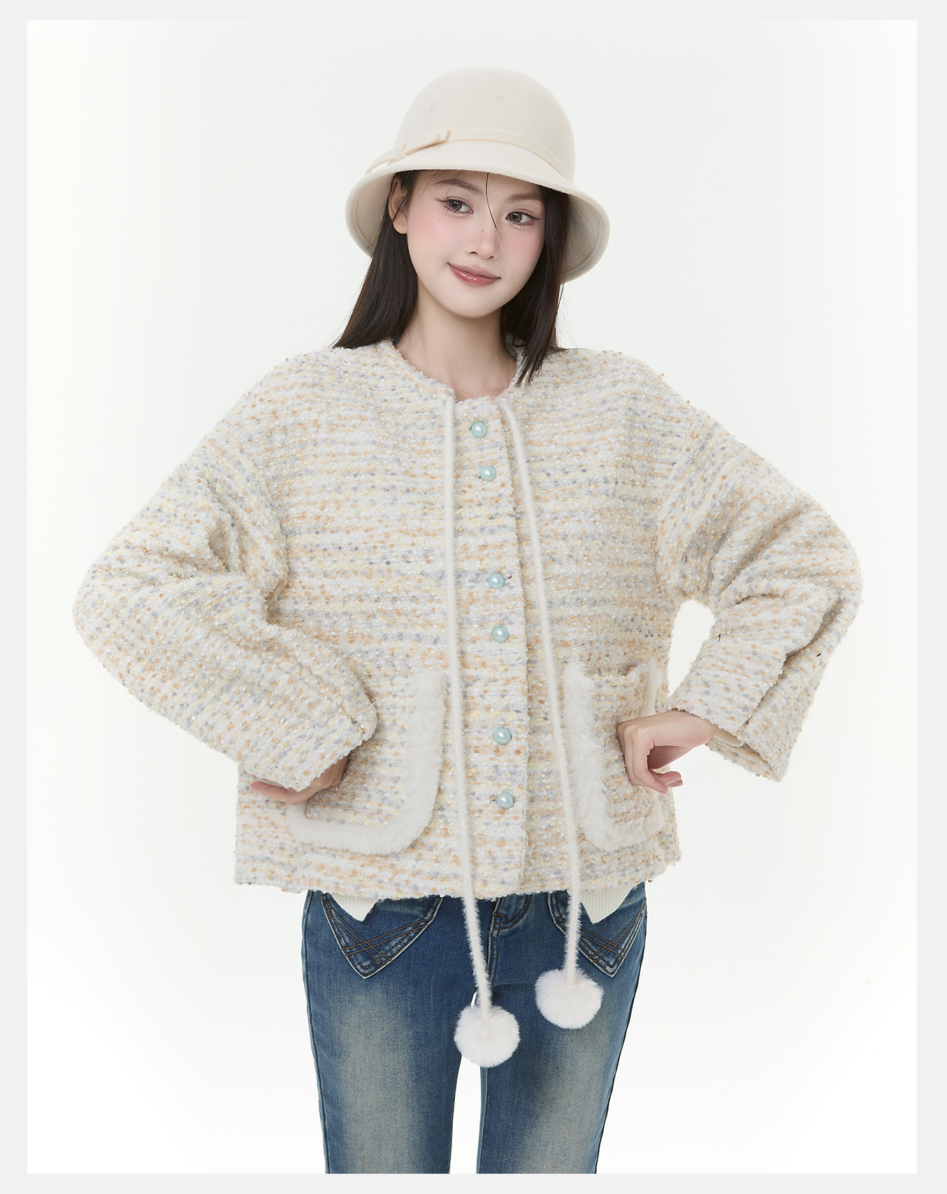 P&X设计师女装2025冬季法式小香风粗花呢短款外套 825413245 花色