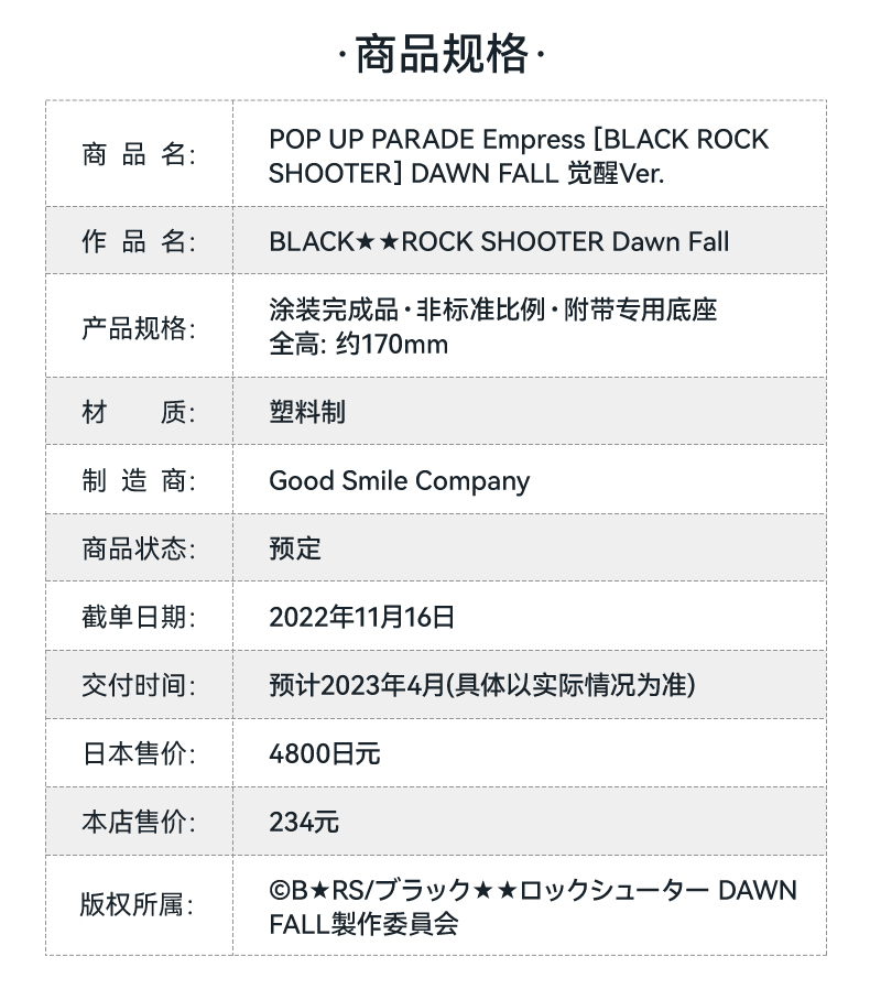 【GSC现货】POP UP PARADE Empress 黑岩射手 DAWN FALL 觉醒Ver