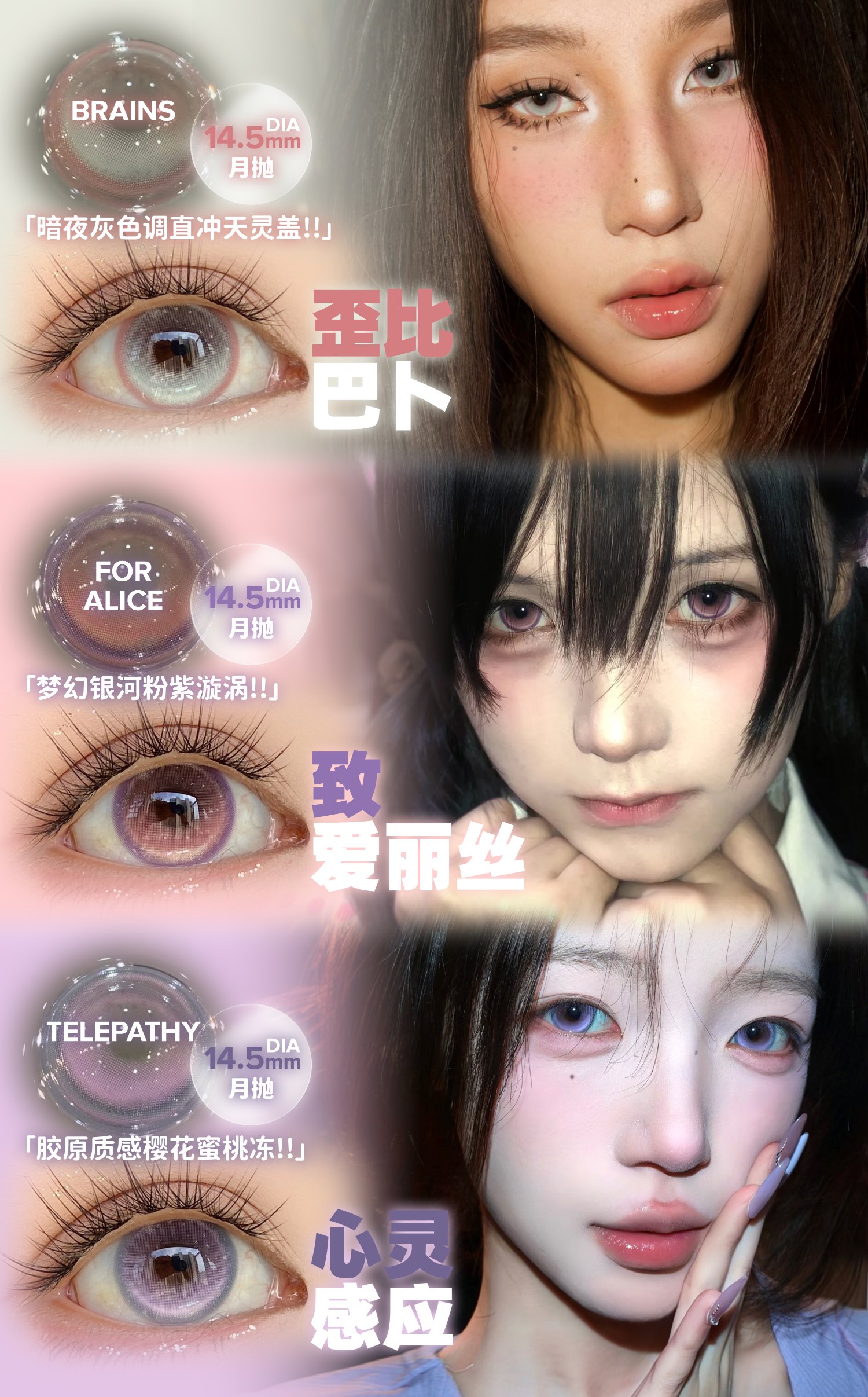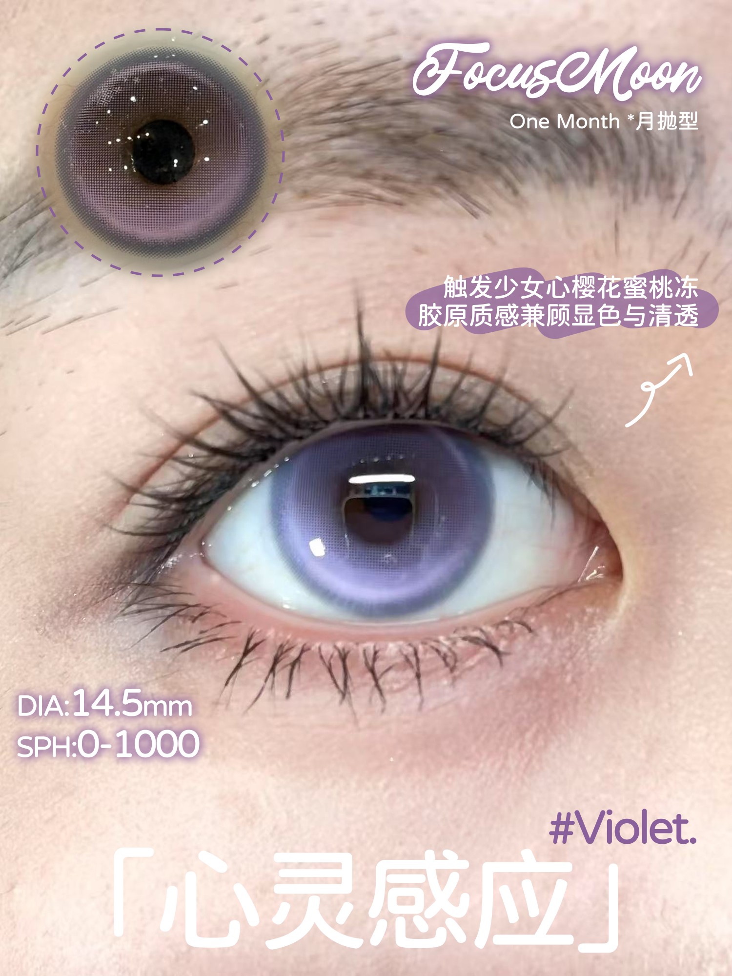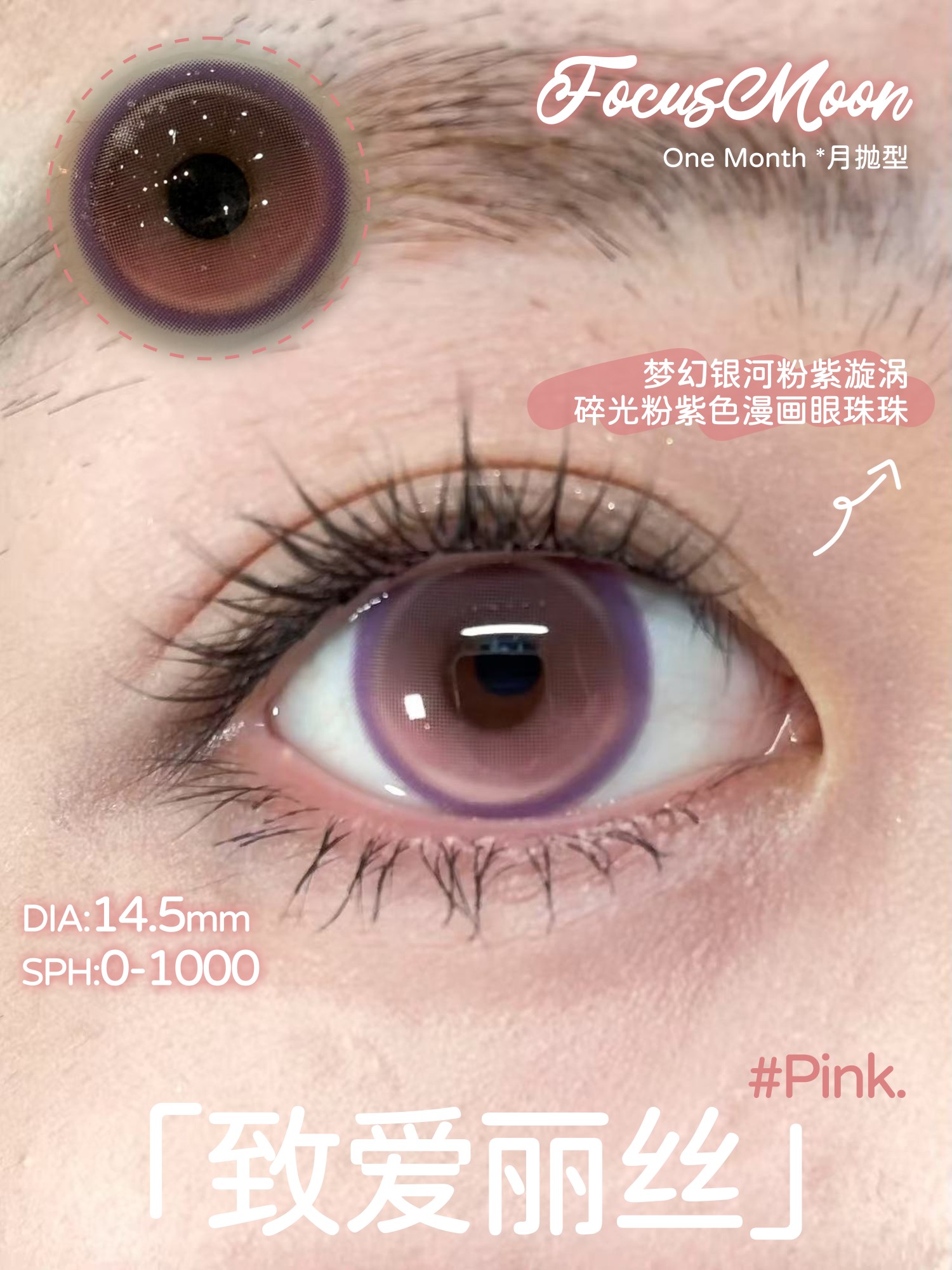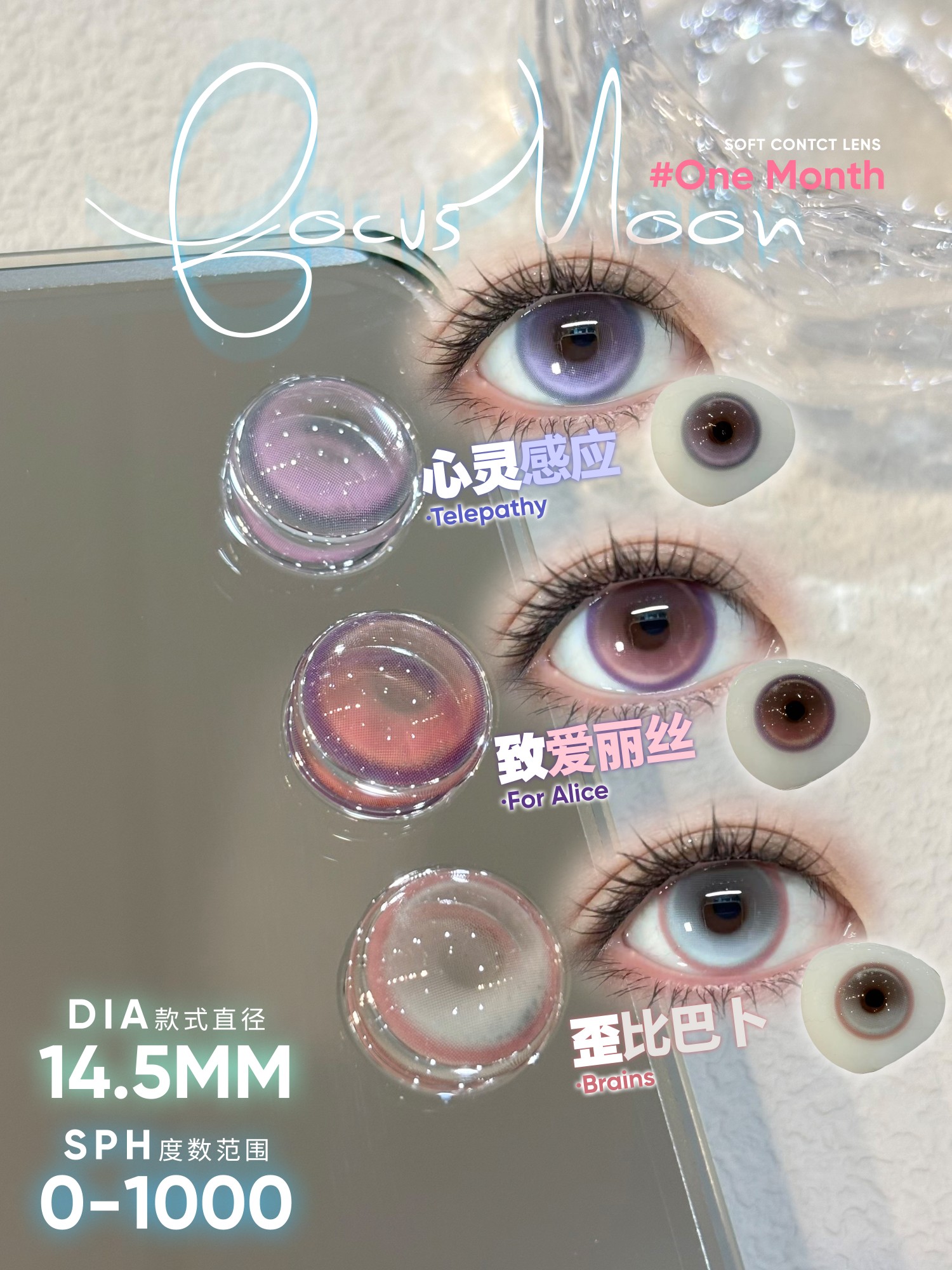 focusmoon月抛 致爱丽丝/歪比巴卜/心灵感应 14.5mm 粉紫灰