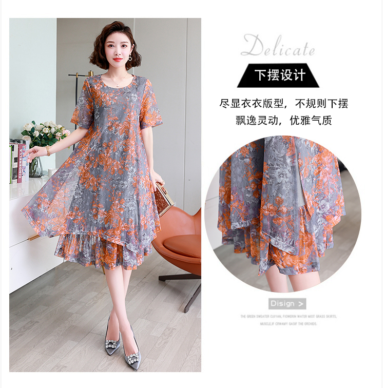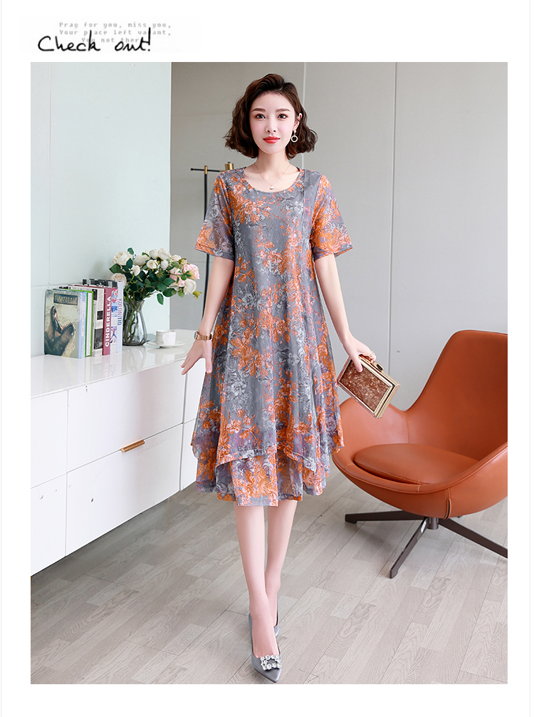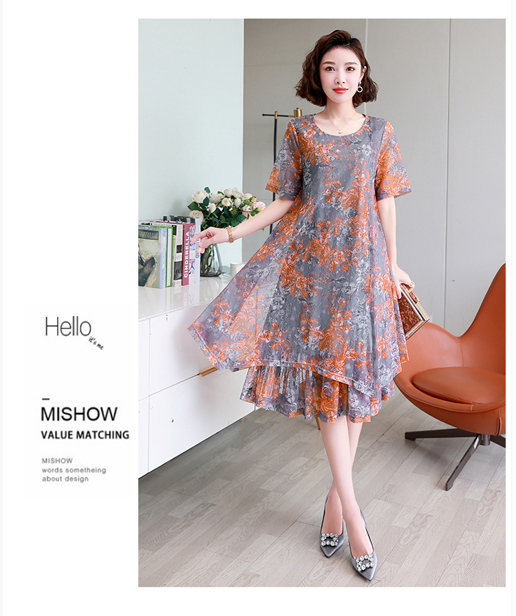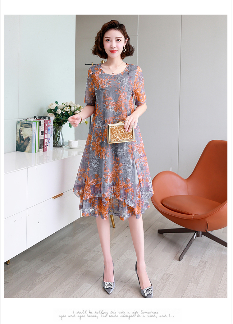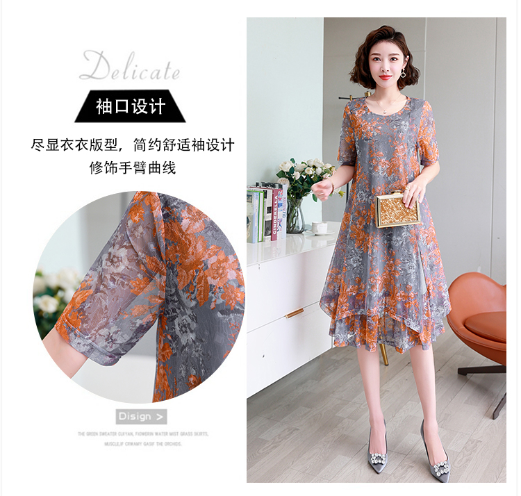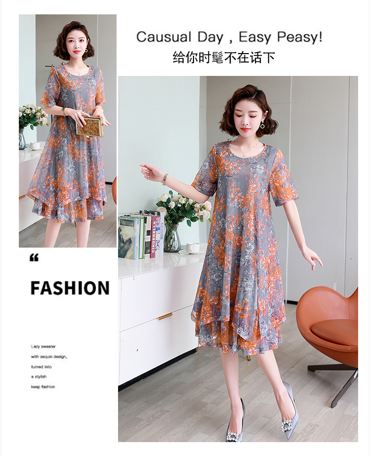 印花宽松,时尚气质优雅减龄中长裙显瘦连衣裙HR-YYG82709