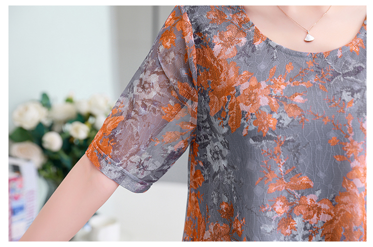 夏季半高领t恤女士别致短袖印花色时尚网纱打底衫MZ801422