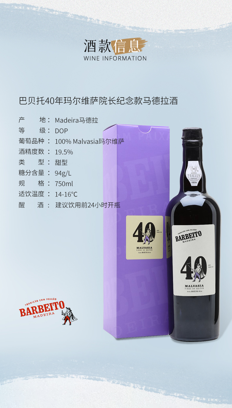 巴贝托40年玛尔维萨院长纪念款马德拉酒 750ml【特别供】