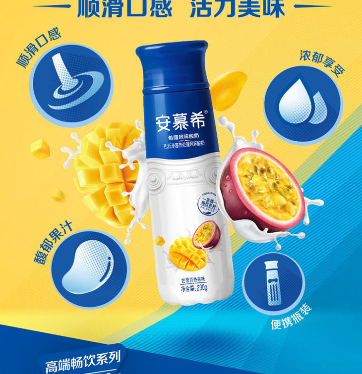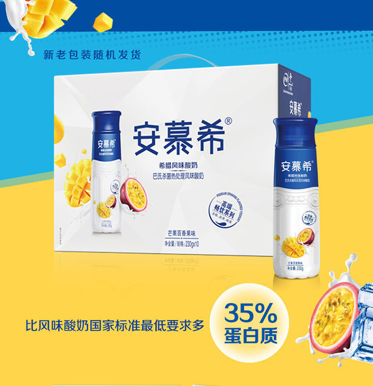 伊利安慕希希腊风味高端畅饮酸奶芒果百香果味 原味230g
