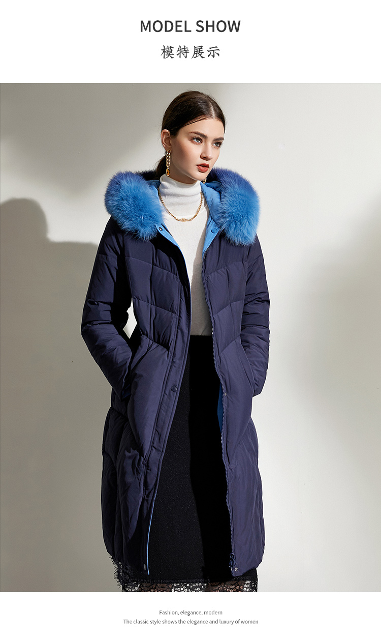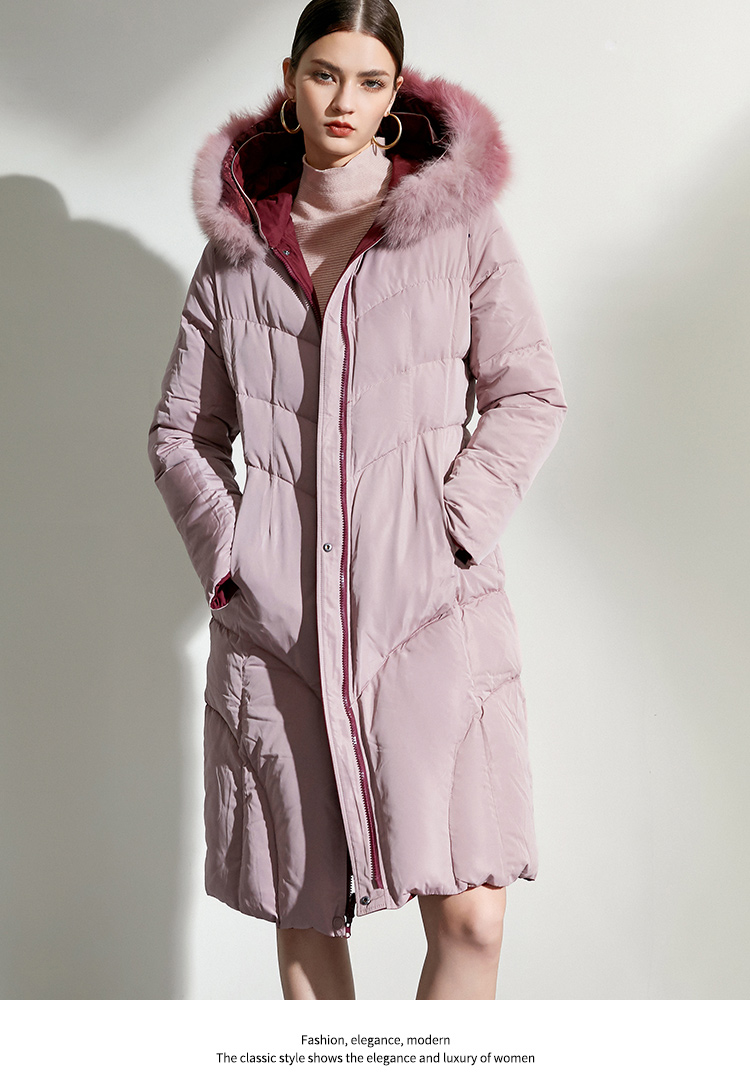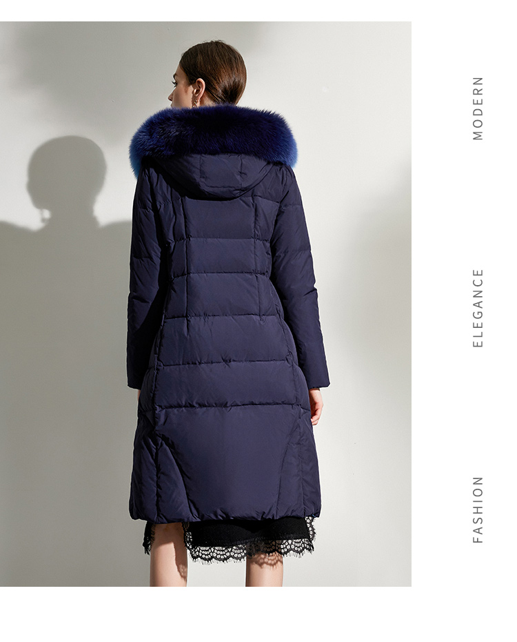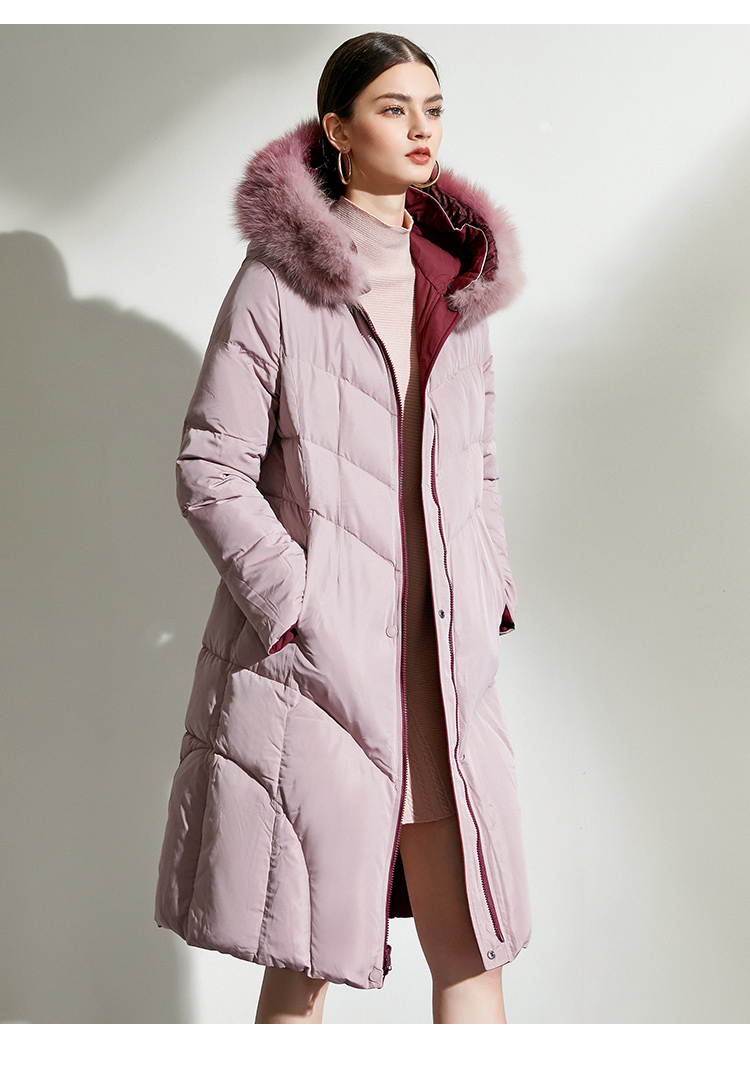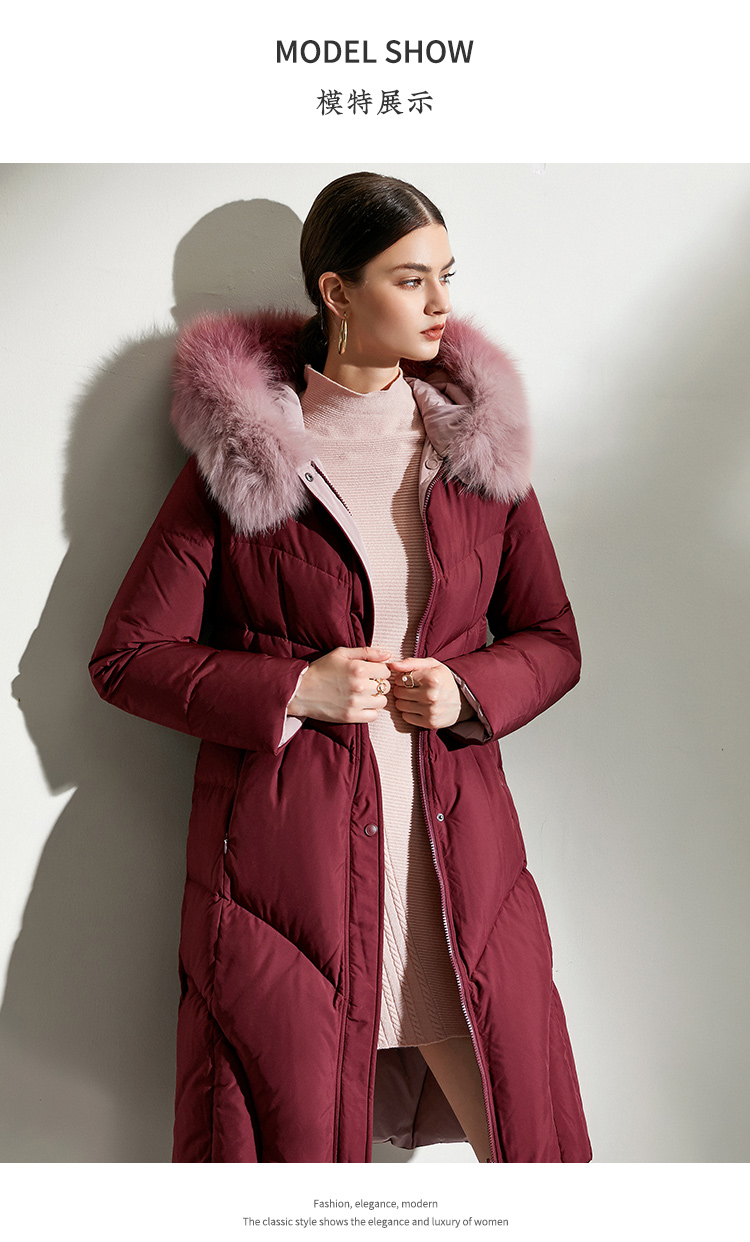 佐尔美冬季新款气质修身长款灰鸭绒貂毛领羽绒服E84YO08
