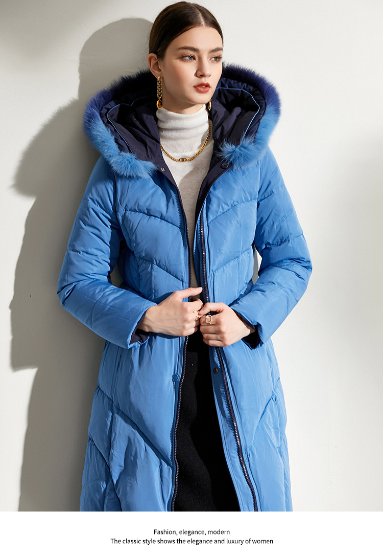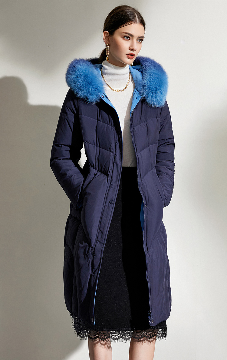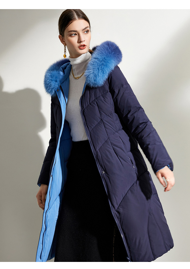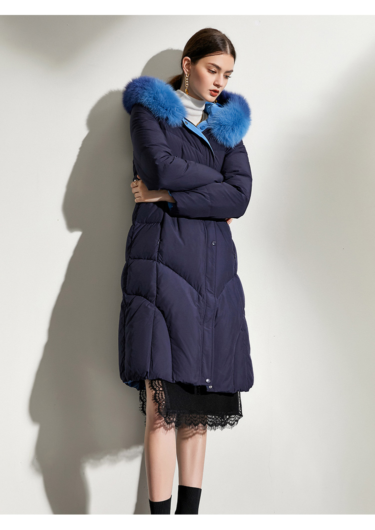 佐尔美冬季新款气质修身长款灰鸭绒貂毛领羽绒服E84YO08