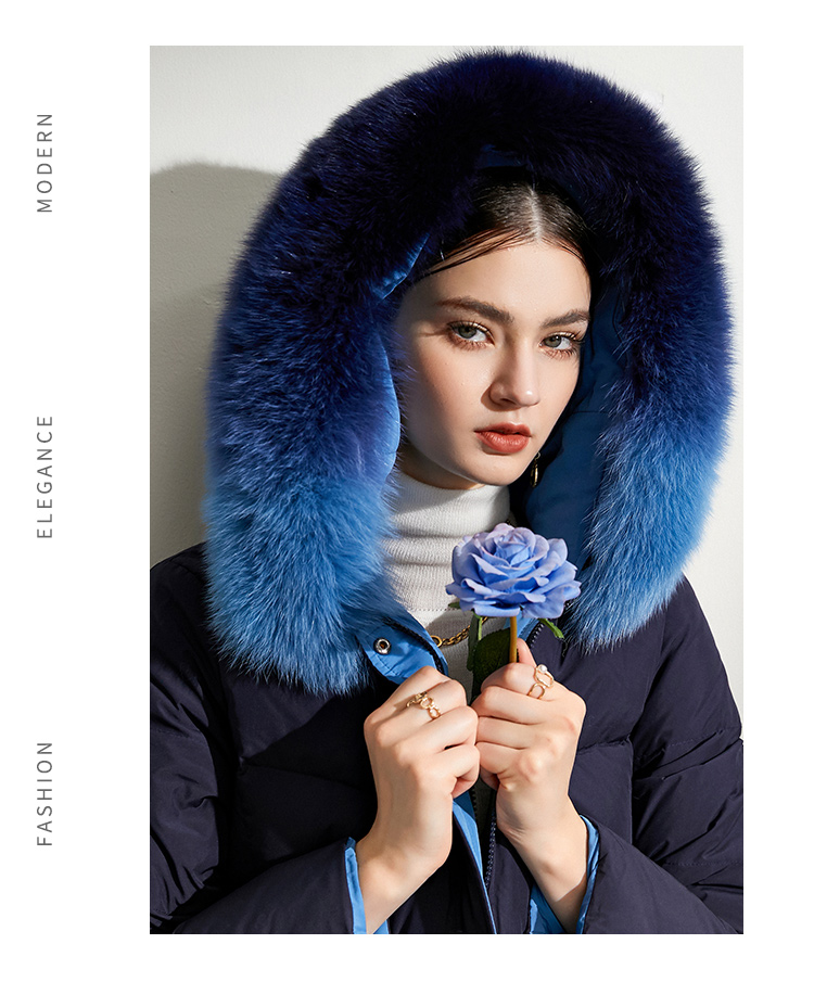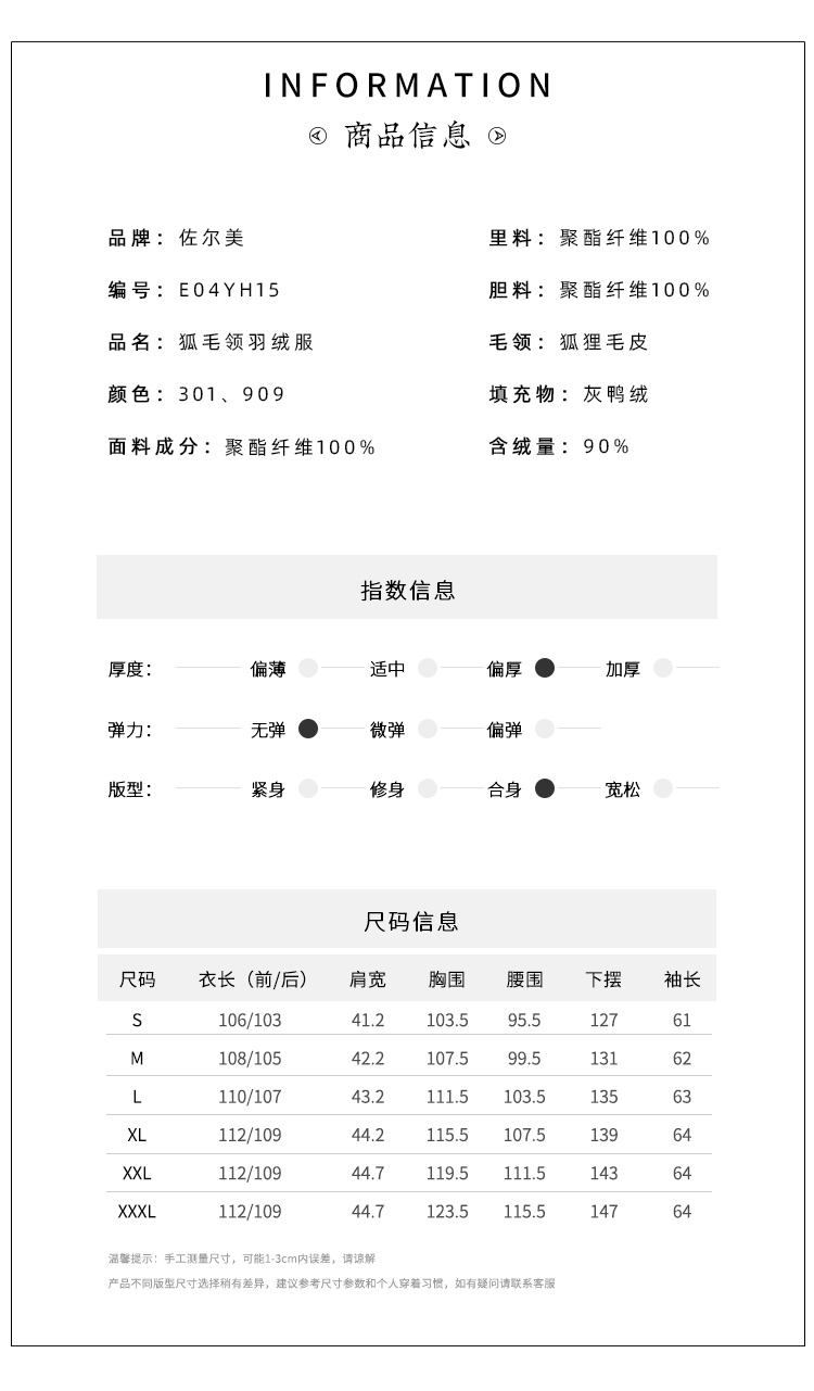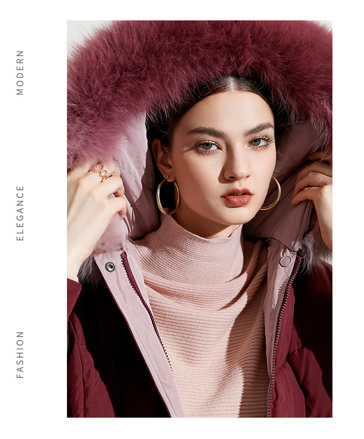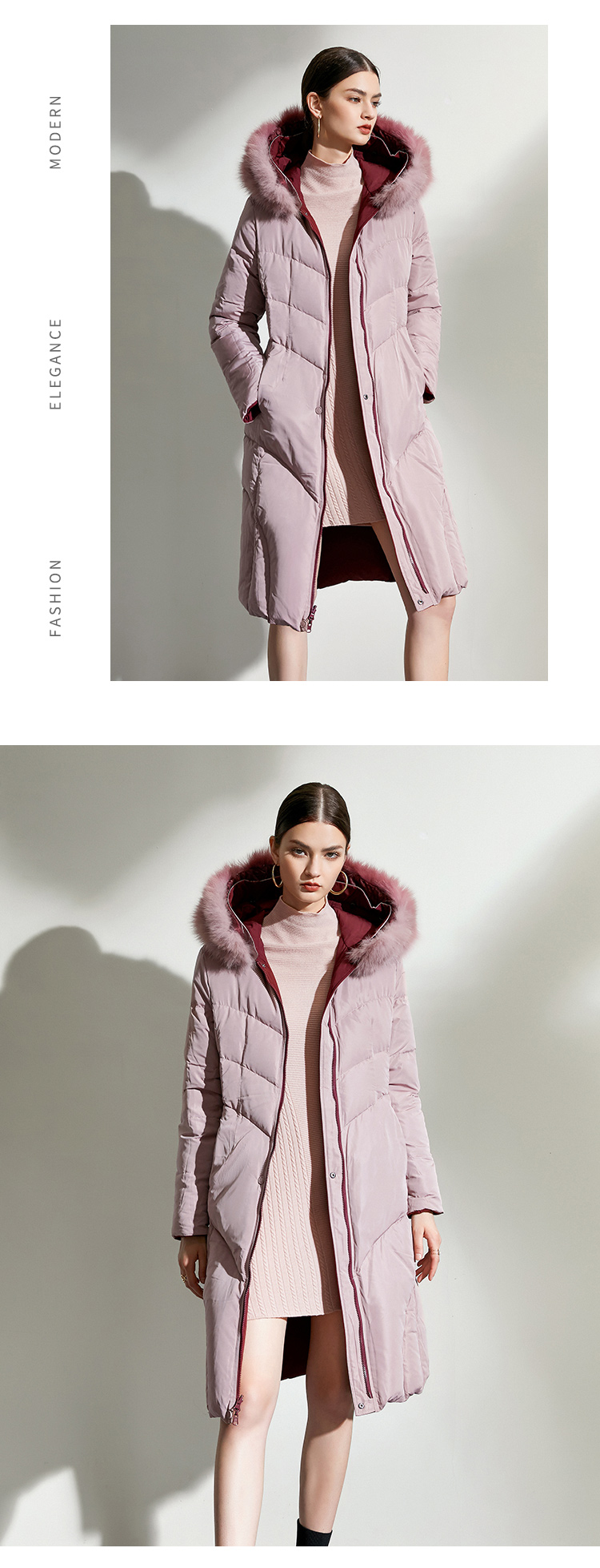 佐尔美2021冬季新品上新 时尚保暖狐毛领羽绒服女 E04YH15