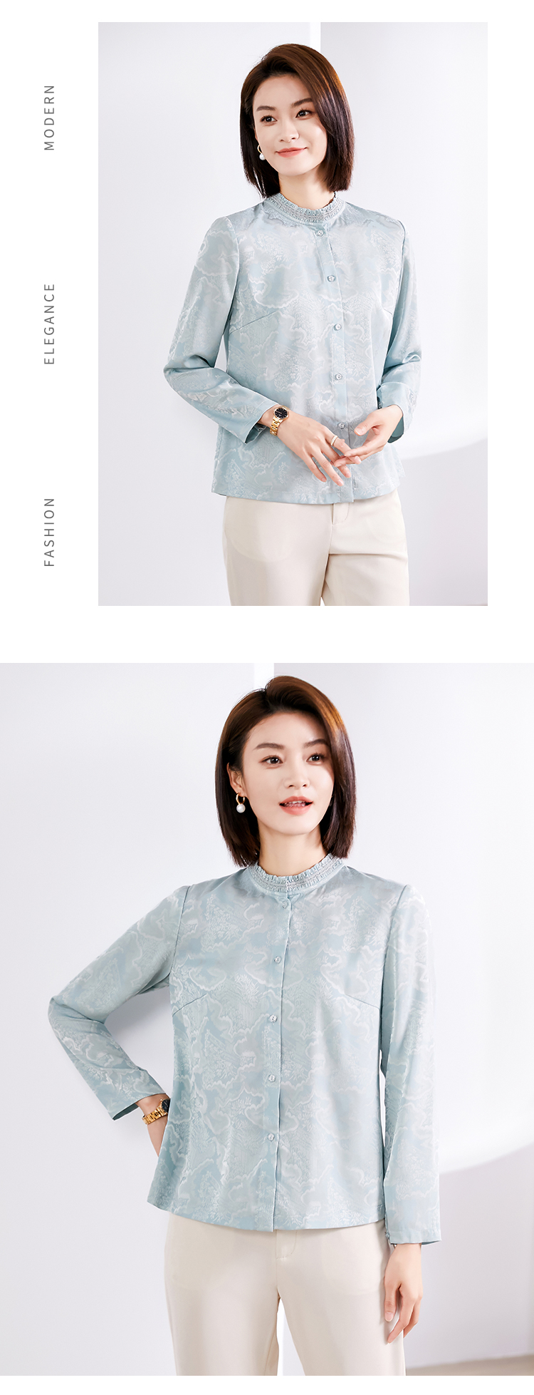 佐尔美春季新款 时尚优雅气质印花长袖衬衣女E33CC25