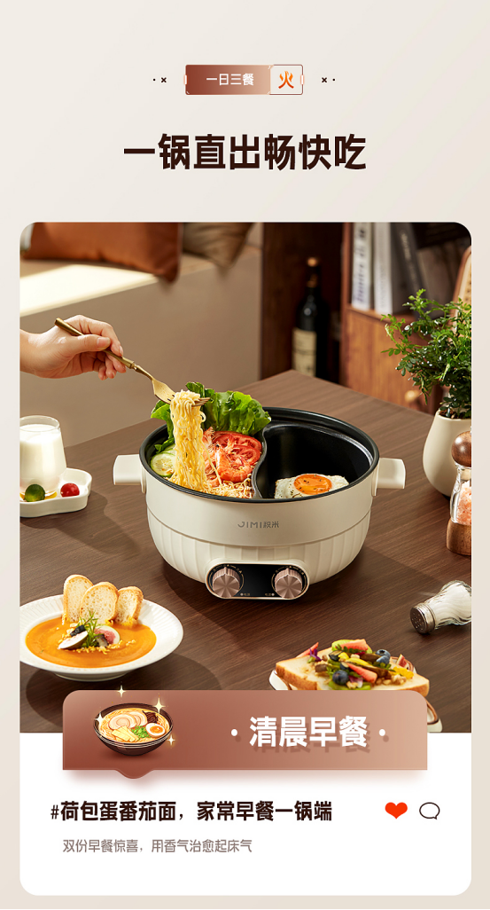 其中, 积米5升大容量鸳鸯电火锅家用多功能一体锅 如果一家人的口味都相同,那选它准没错~超级大的一锅,可一次炫过瘾!