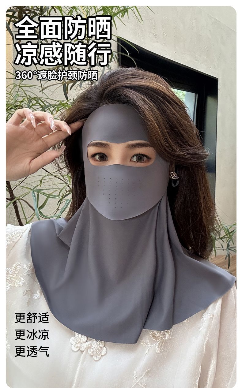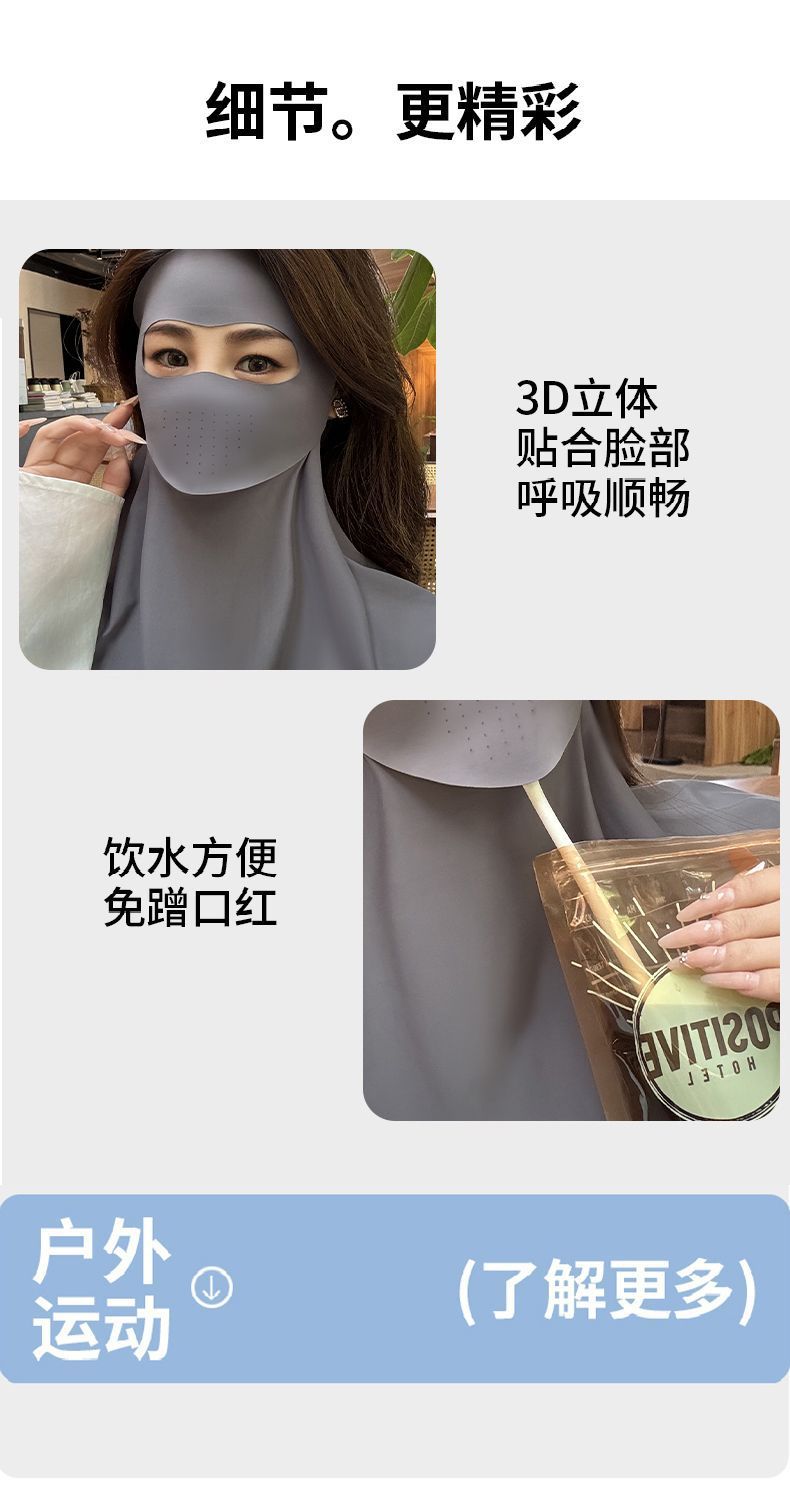 【遮阳一体❗️冰丝口罩】可喝水防晒面罩脸基尼夏季全脸防护脖子防紫外线遮阳一体冰丝口罩。ya