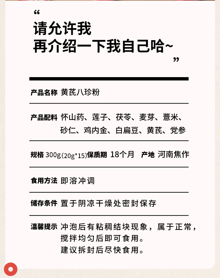 「黄芪八珍粉」300克/盒 | 怀山药莲子茯苓麦芽薏米砂仁党参鸡内金白扁豆儿童老人营养健康早餐代餐 | 气虚湿气养生 | 元和好物迷罗亲研