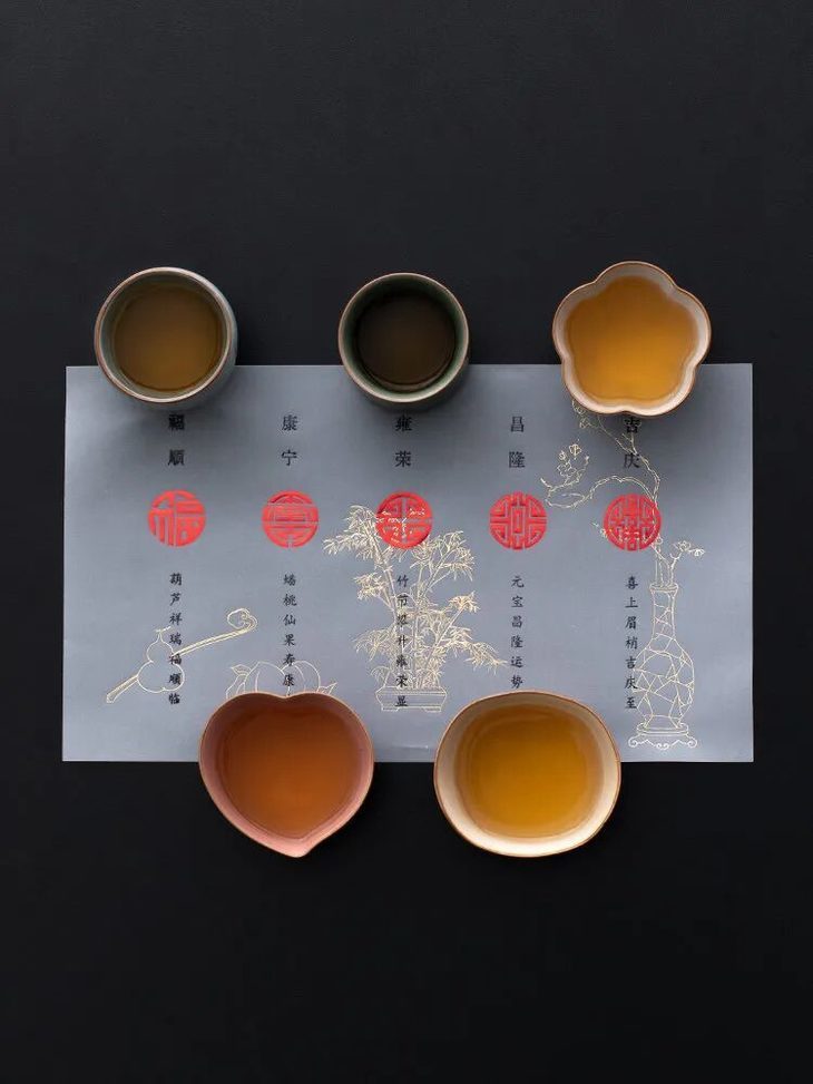 五帝五福的寓意,喝一口都觉得 “有盼头”,不再是单纯的喝茶。让日常饮茶,拥有放佛在「宫廷」的仪式感,太绝了。