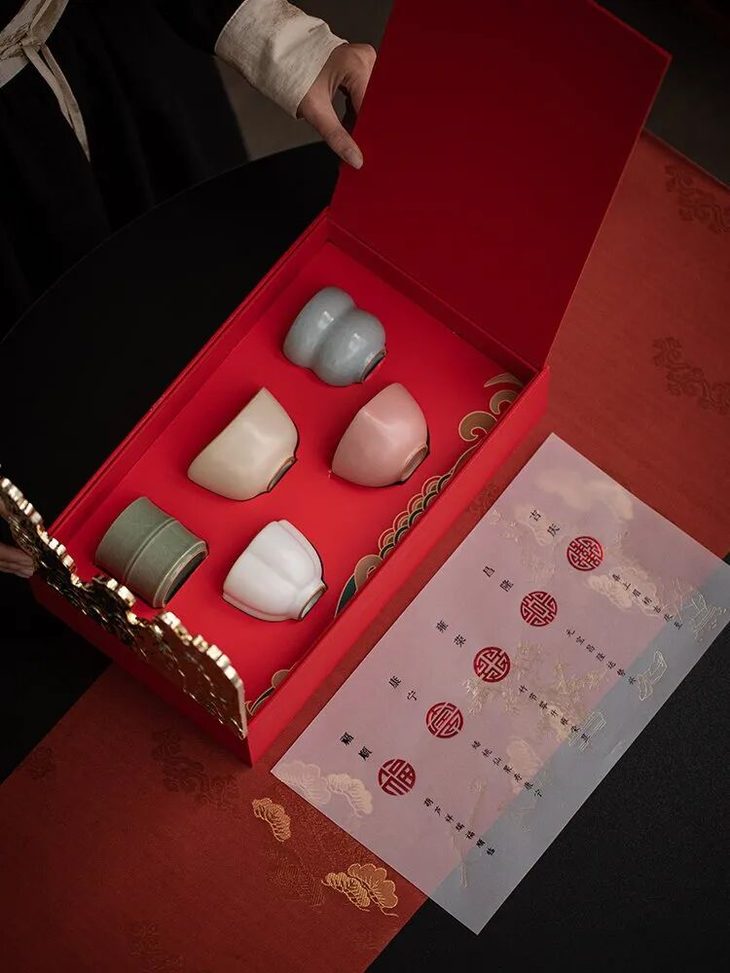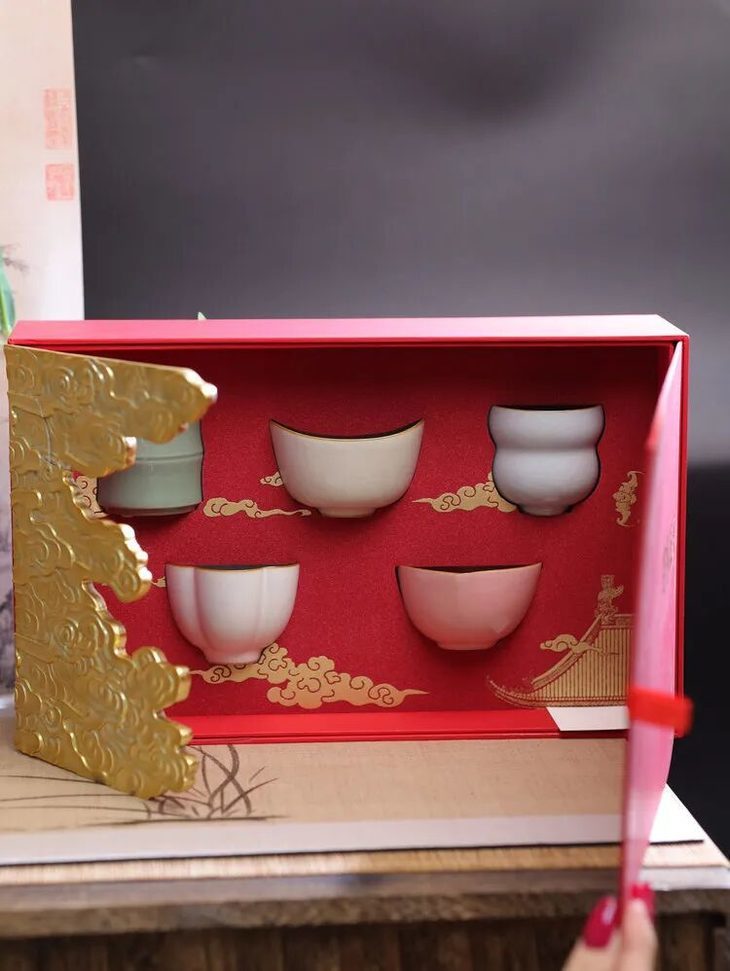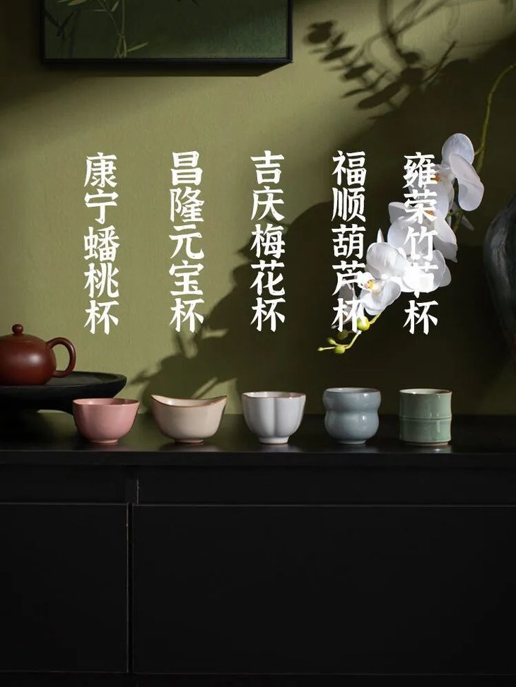 用顺治、康熙、雍正、乾隆、嘉庆五个皇帝的年号为灵感,融合宫廷祥瑞文化,通通揉进这五个汝窑杯子里!