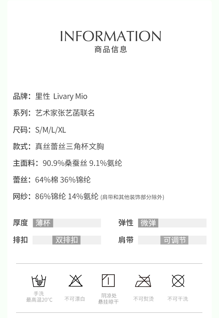 里性 LIVARY MIO 林影艺术家张艺菡联名真丝蕾丝无钢圈三角杯文胸