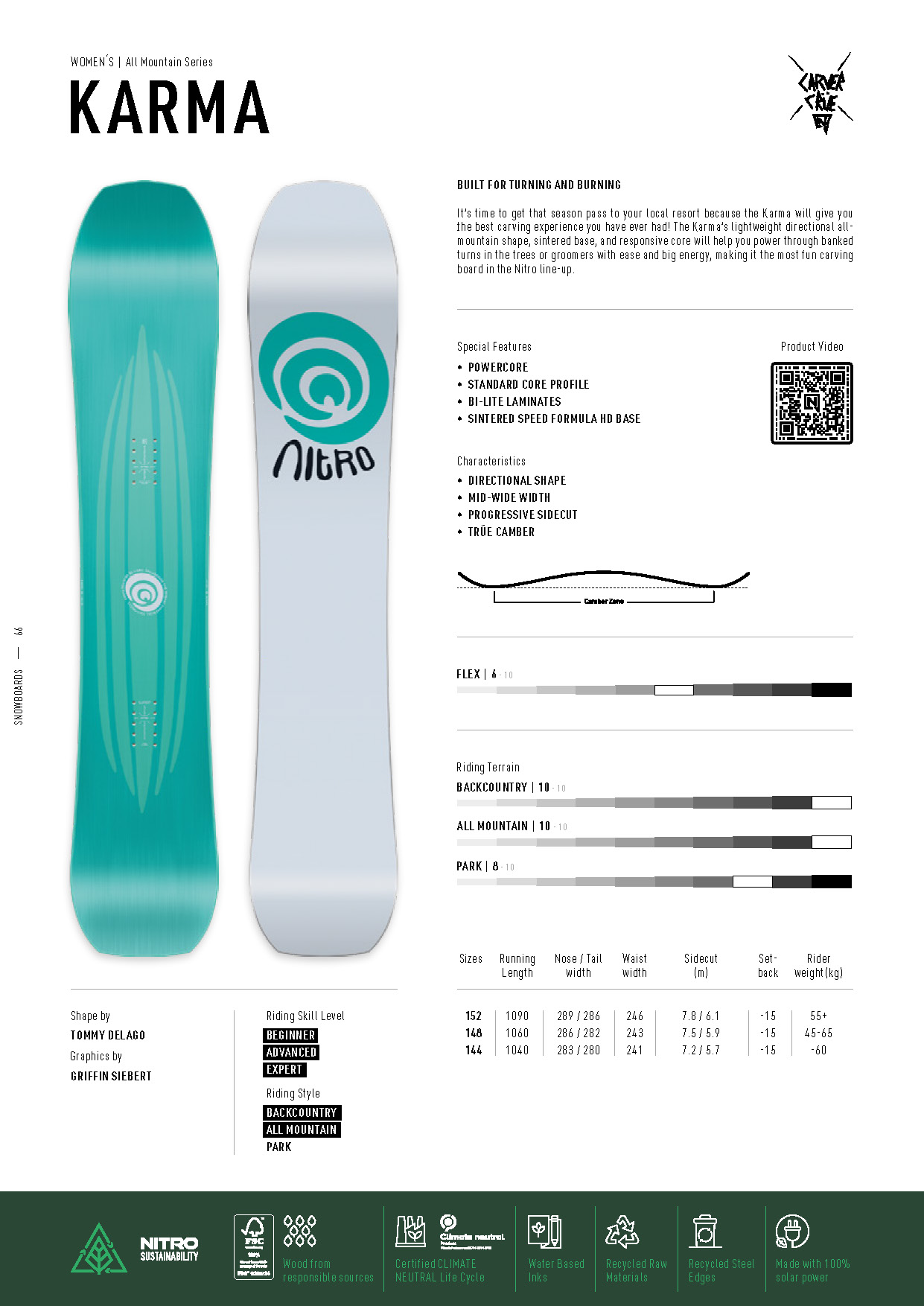Nitro 23-24 【KARMA】 女款雪板 ALL MOUNTAIN 144 148