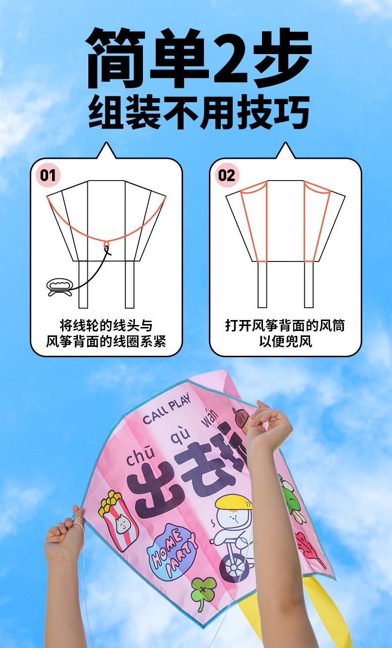 【口袋便捷风筝!不易破】科答鸭儿童卡通风筝微风易飞初学者春季男女孩3-7岁学生户外玩具。xa