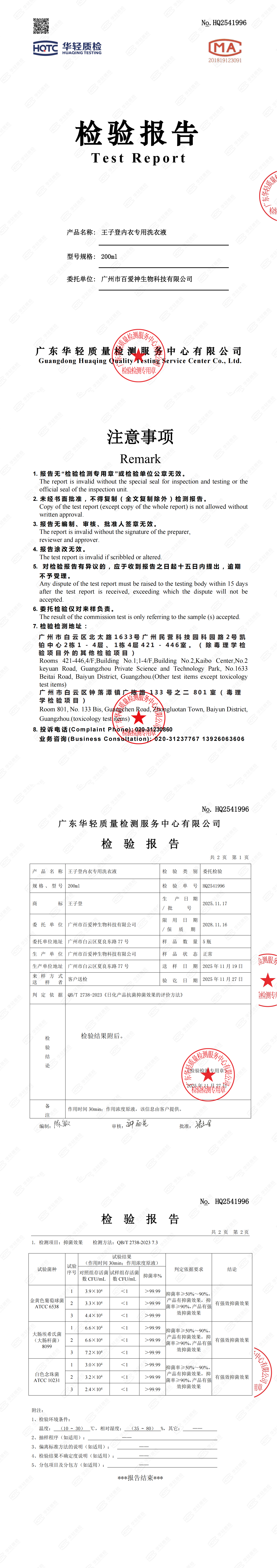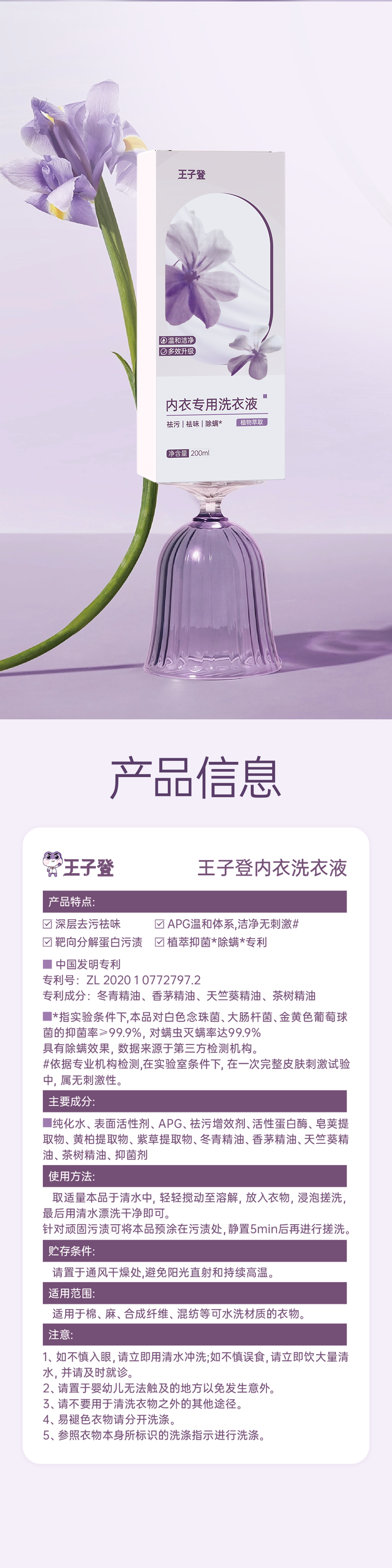 【节后发货】王子登 内衣专用洗衣液 200ml