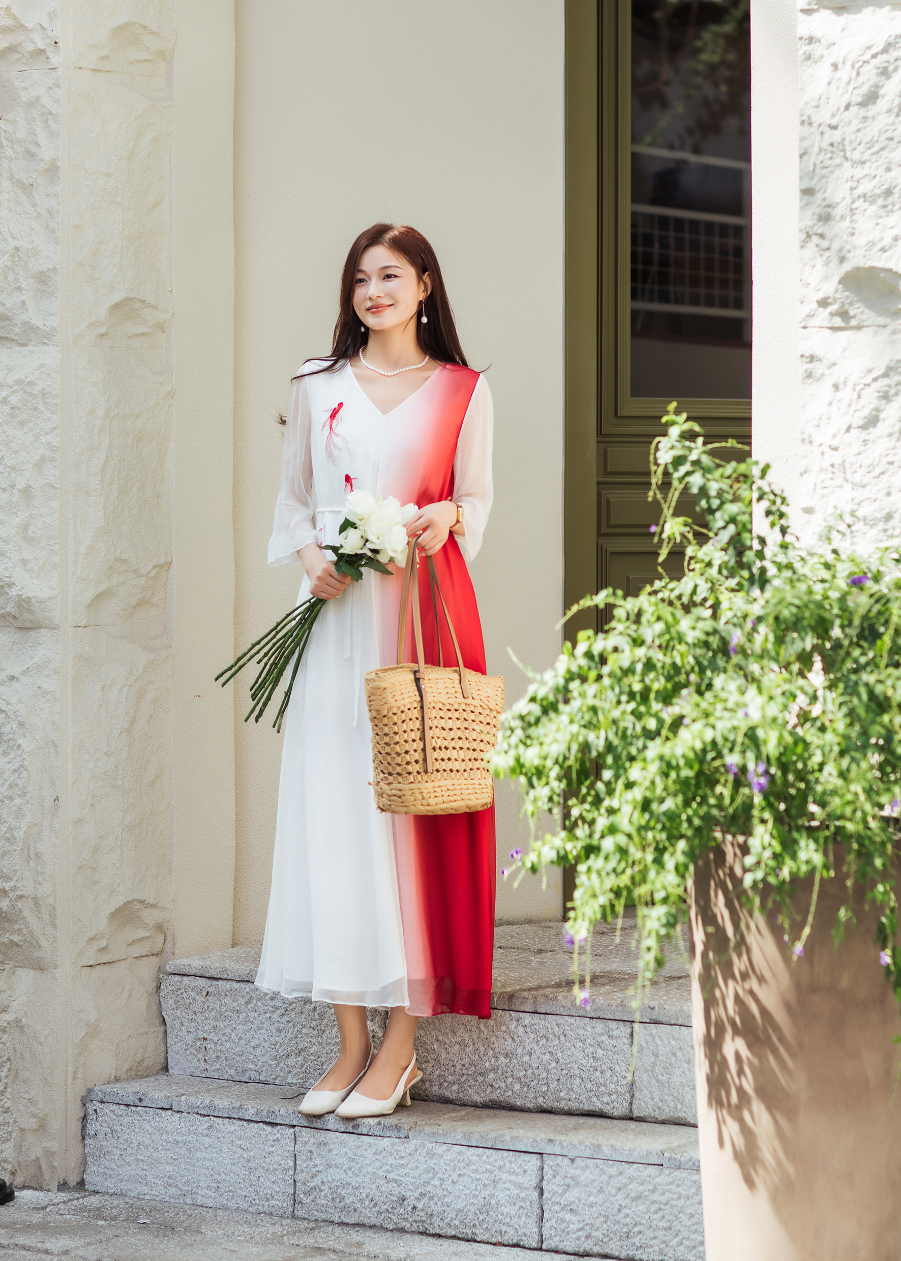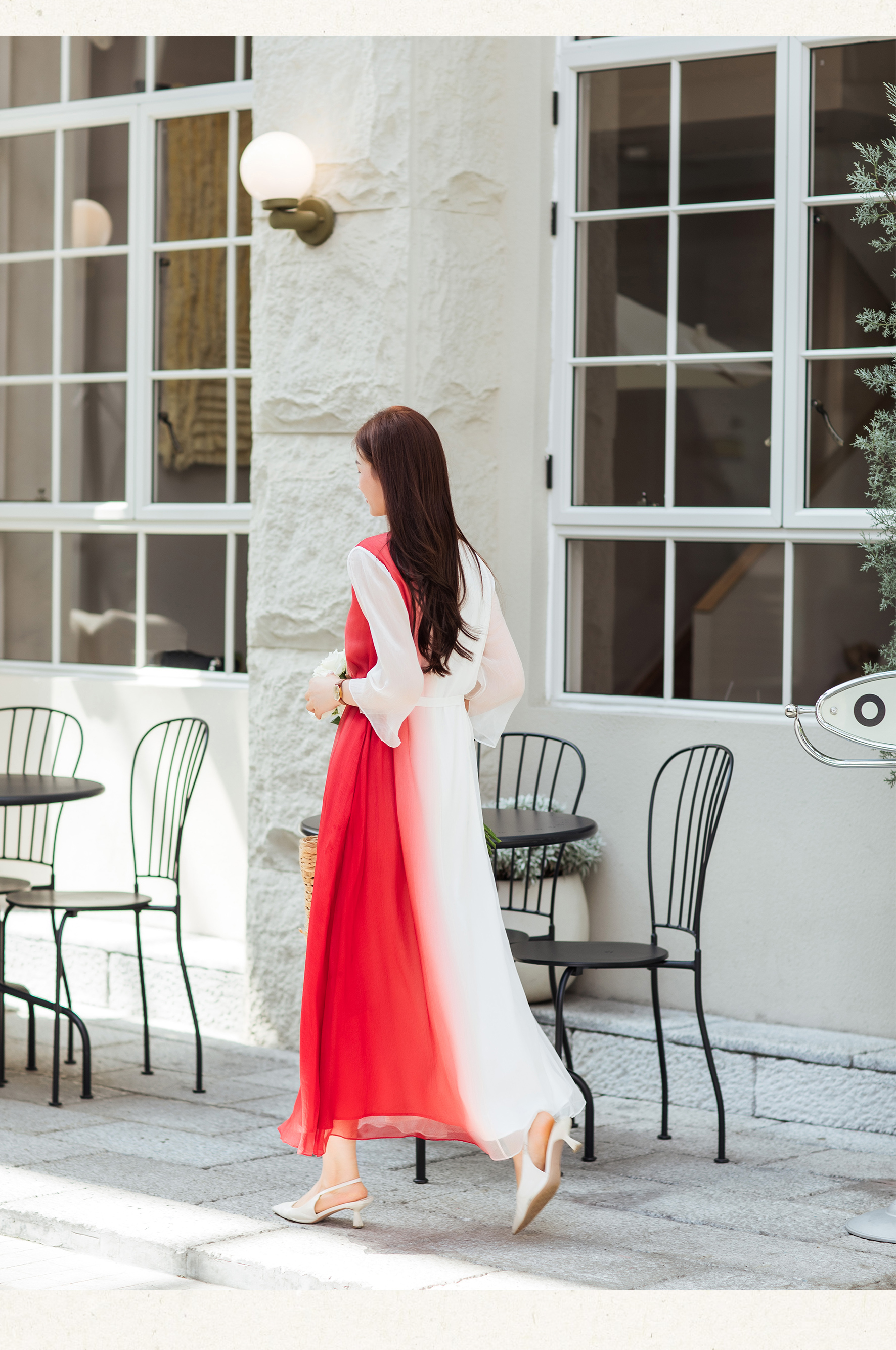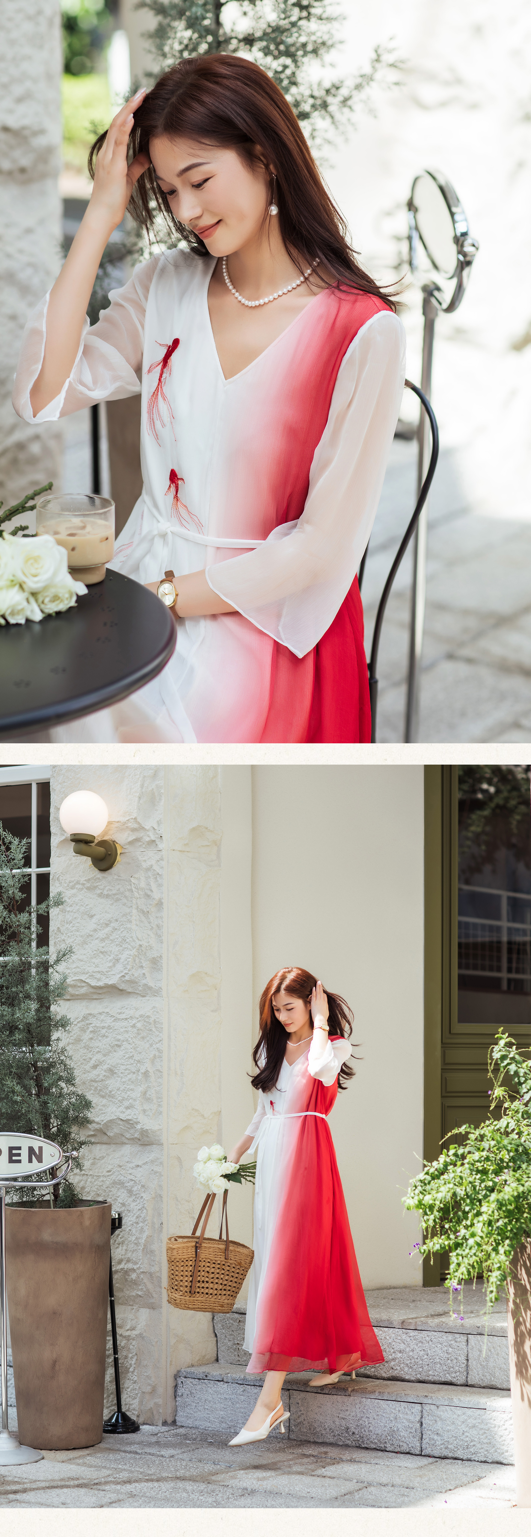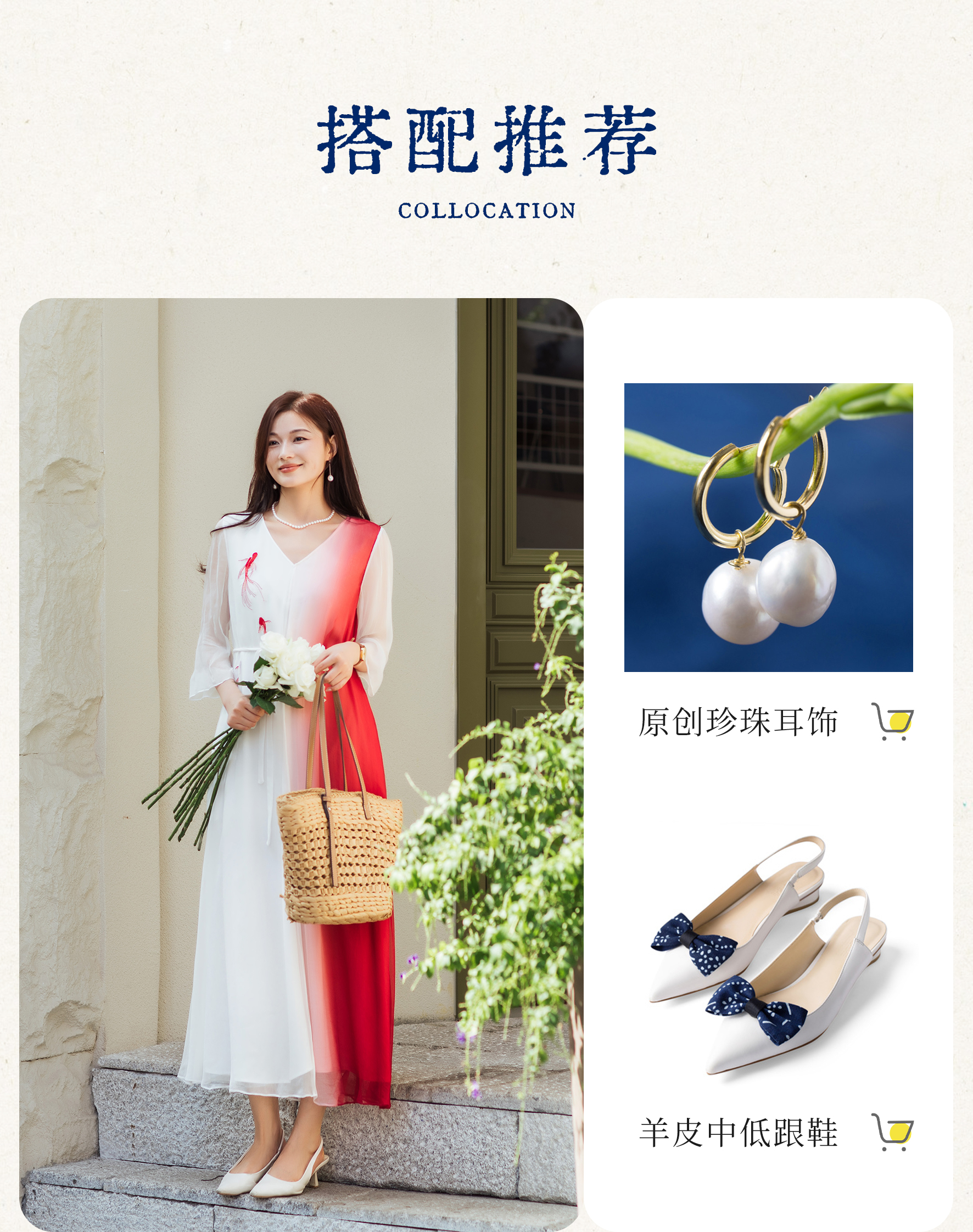 【林栖设计小店】【林栖推荐】锦鲤渐变色桑蚕丝连衣裙 夏季新款气质V领长裙N1953319