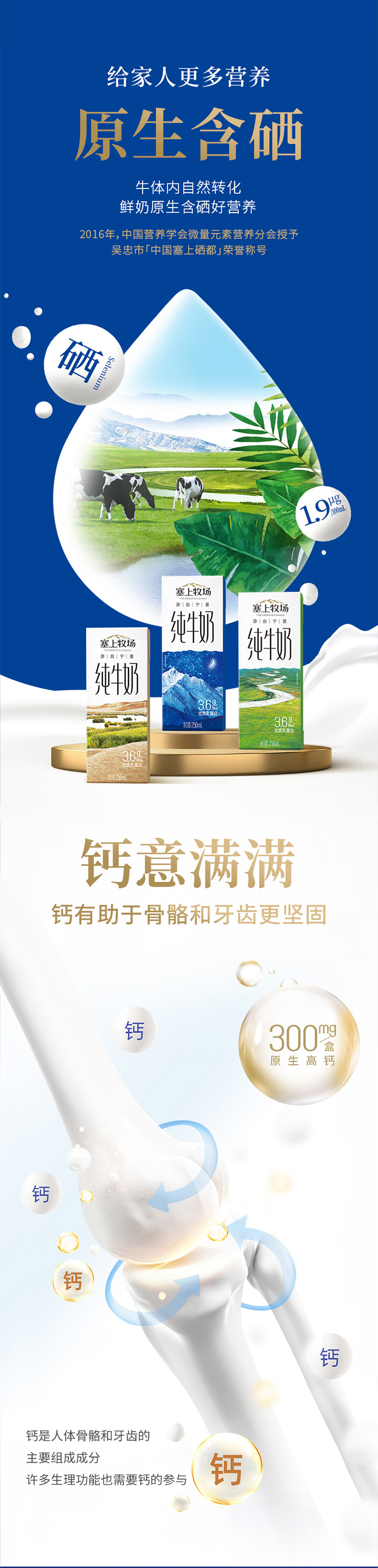 塞上牧场A2β-酪蛋白纯牛奶 250ml×12盒