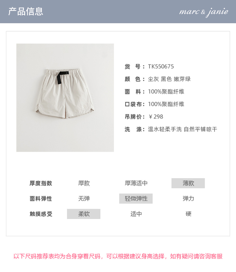 【速干】马克珍妮男女童轻弹户外网球运动短裤儿童夏装新款550675