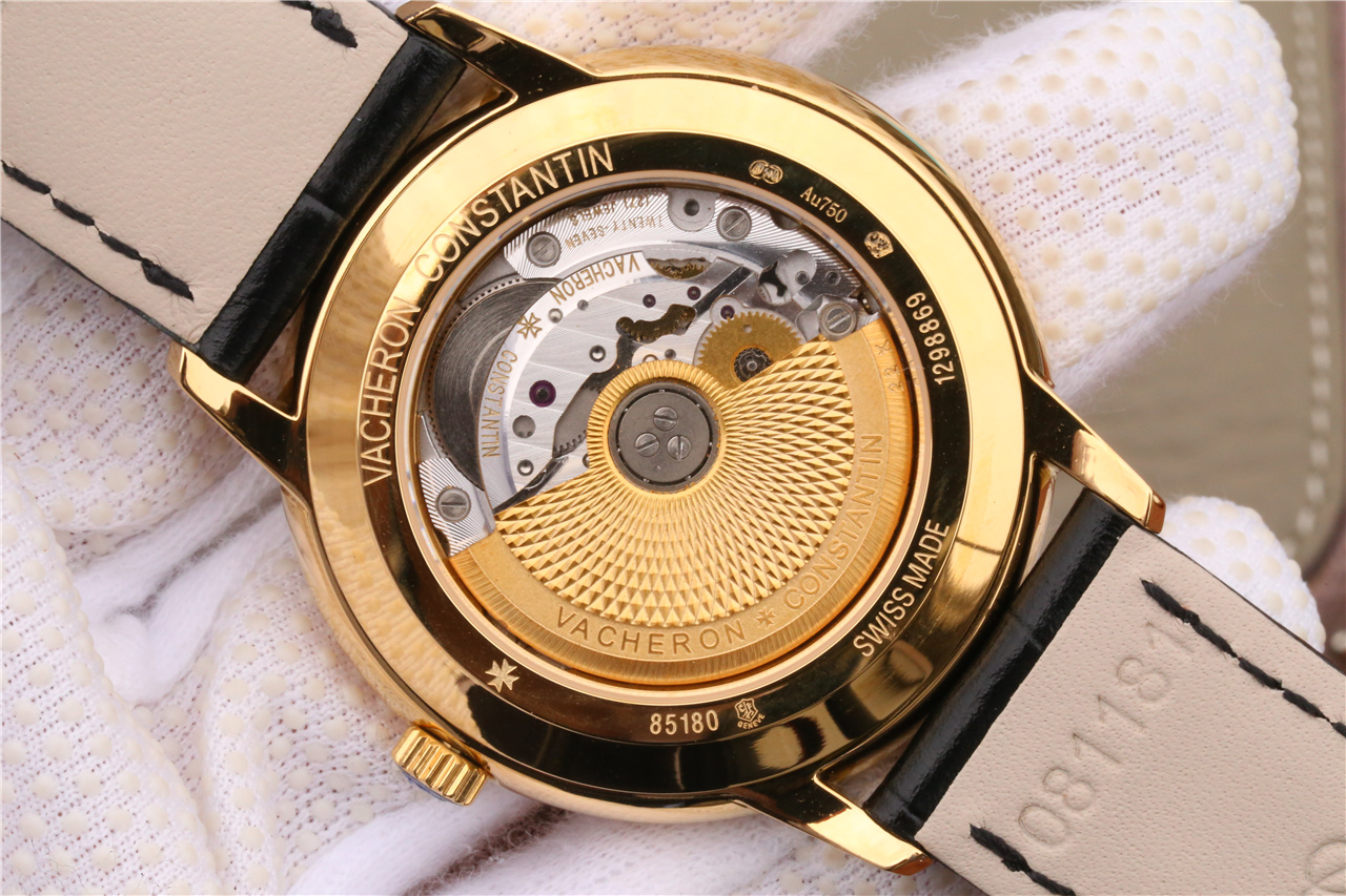 MKS江诗丹顿传承系列85180腕表 【表壳】尺寸40mmX9mm(吻合原装)完美圆形的表壳,搭配微孤式表耳设计,使之更加贴合佩戴者