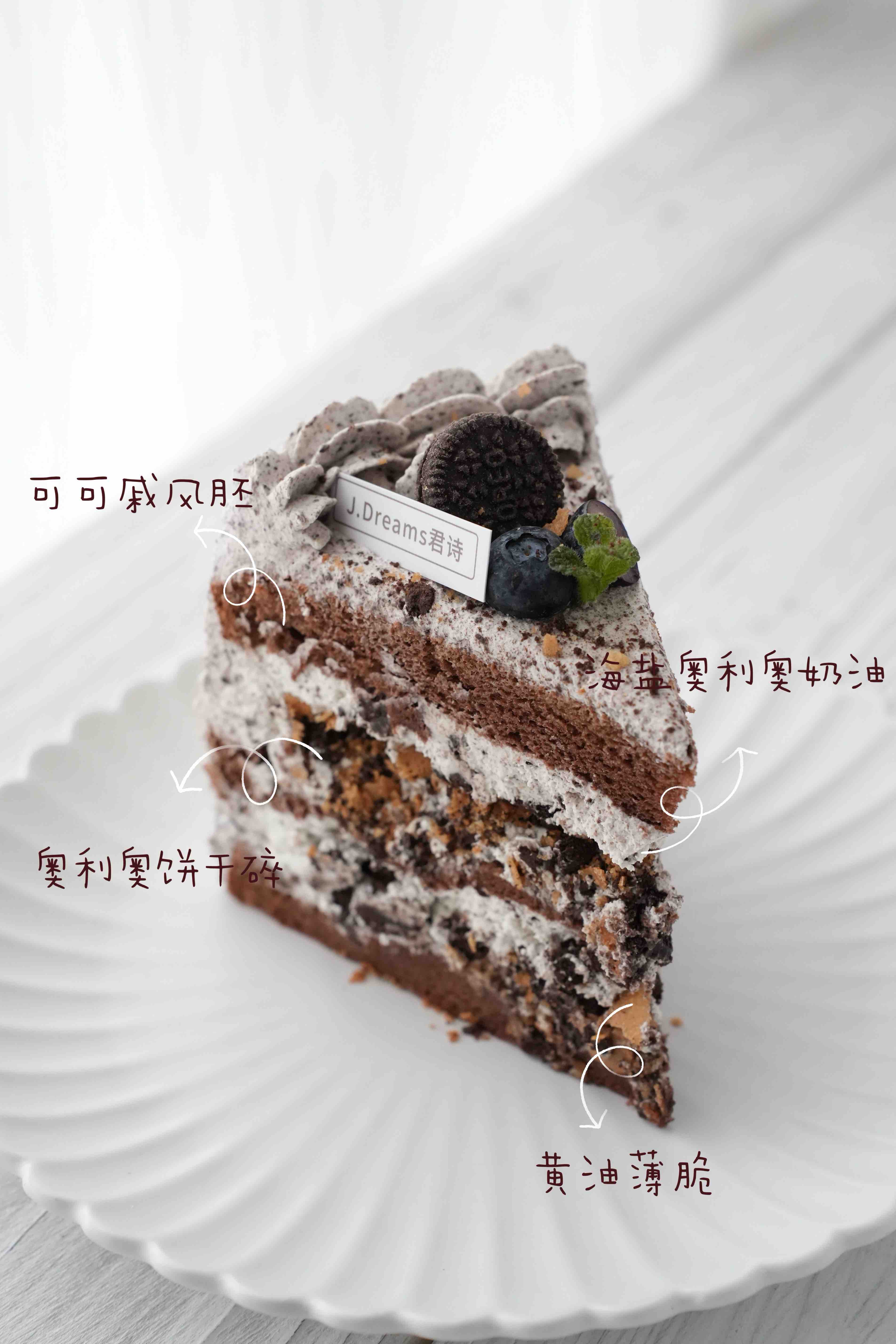 香浓可可胚,夹心奥利奥碎+原味薄脆,海盐奥利奥奶油丝滑微咸,一口咸甜暴击真上头!