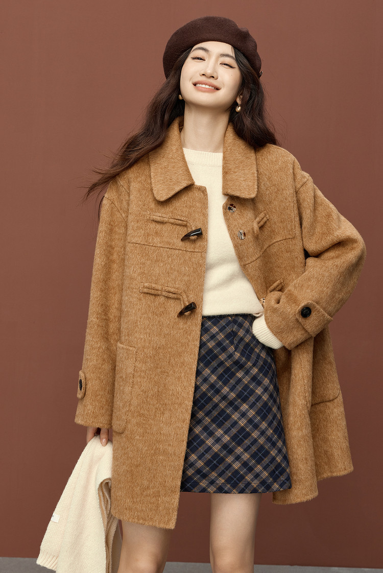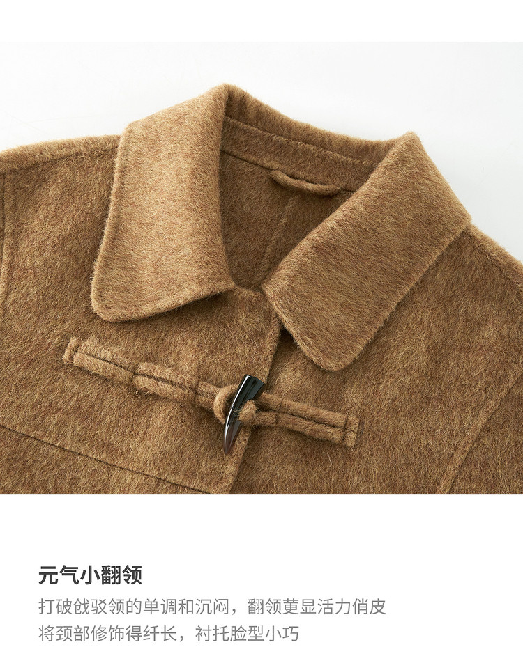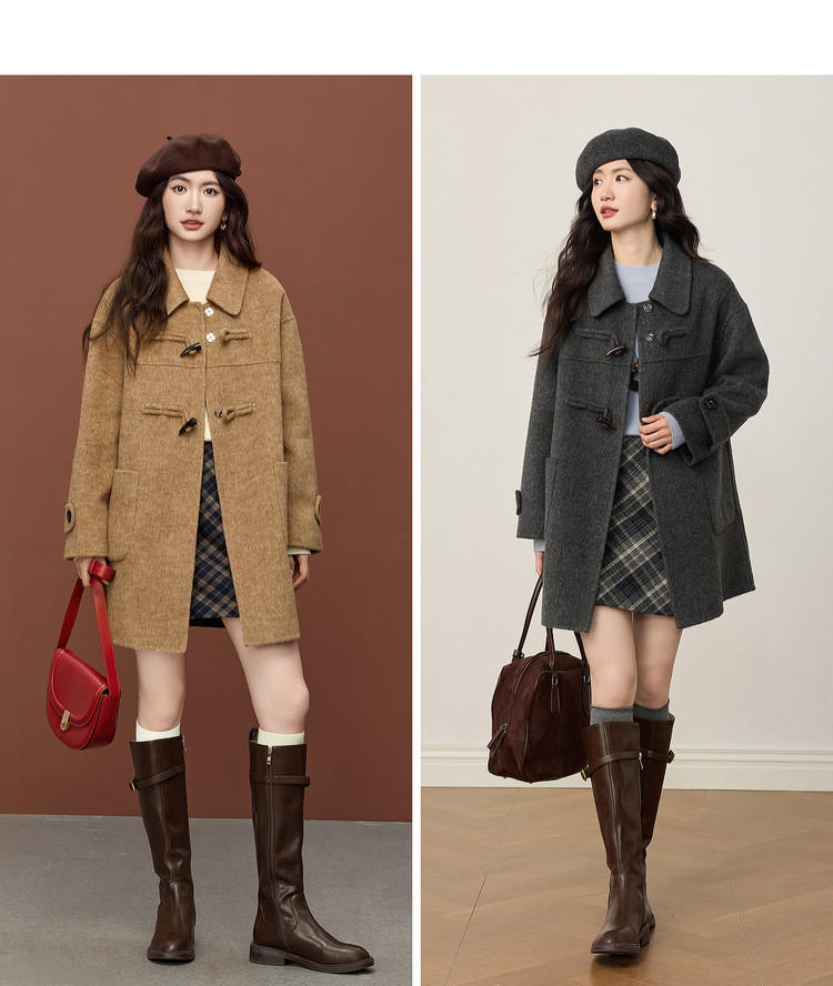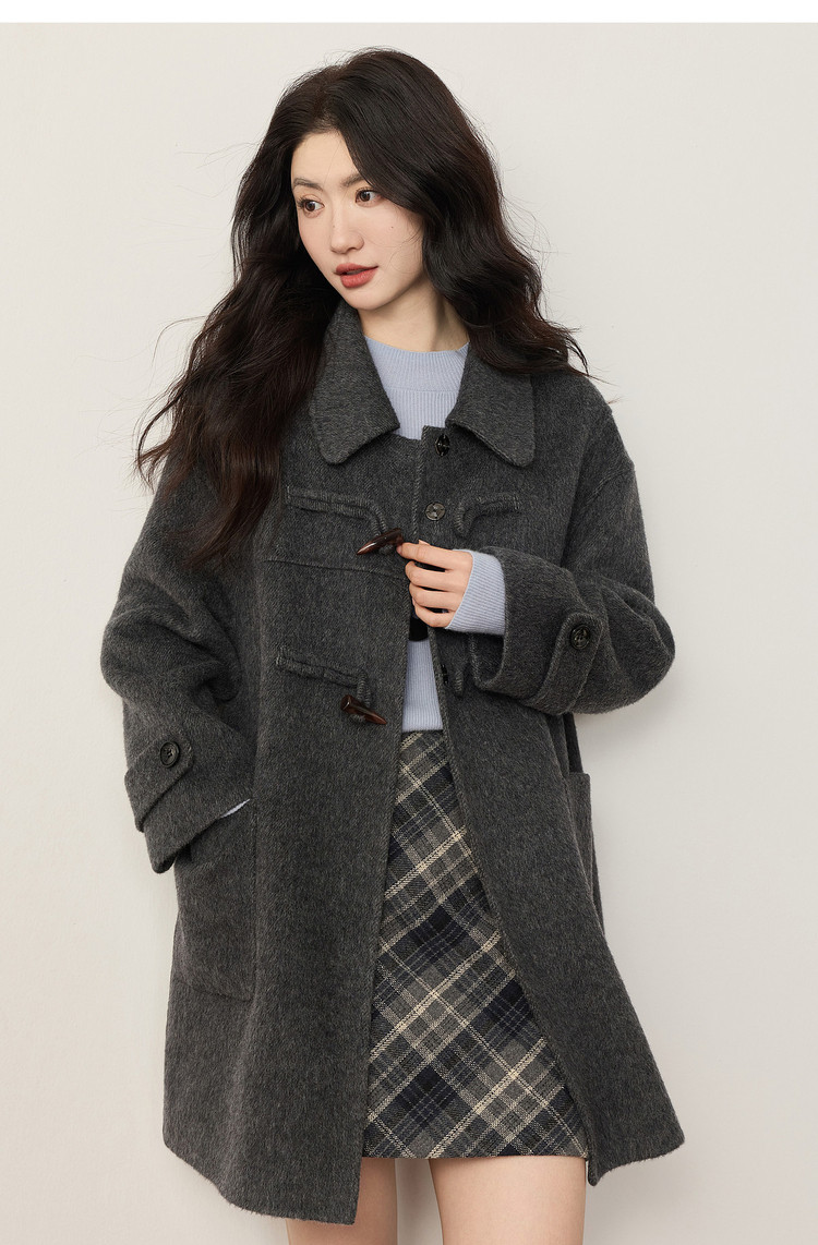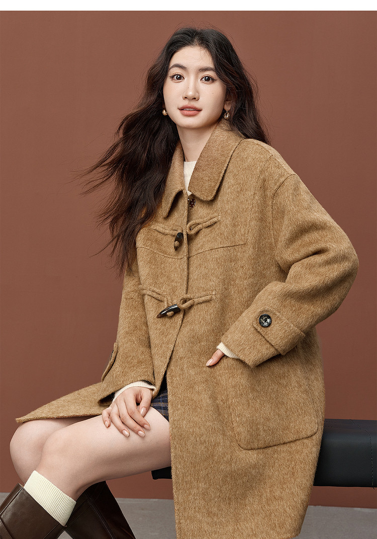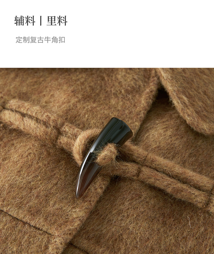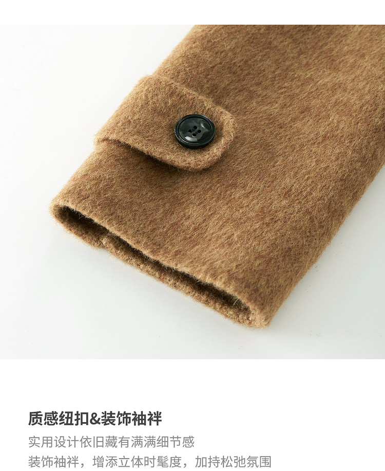 【12/24新品6.5折】熙世界复古牛角扣呢子大衣女中长款冬装宽松慵懒翻领加厚毛呢外套