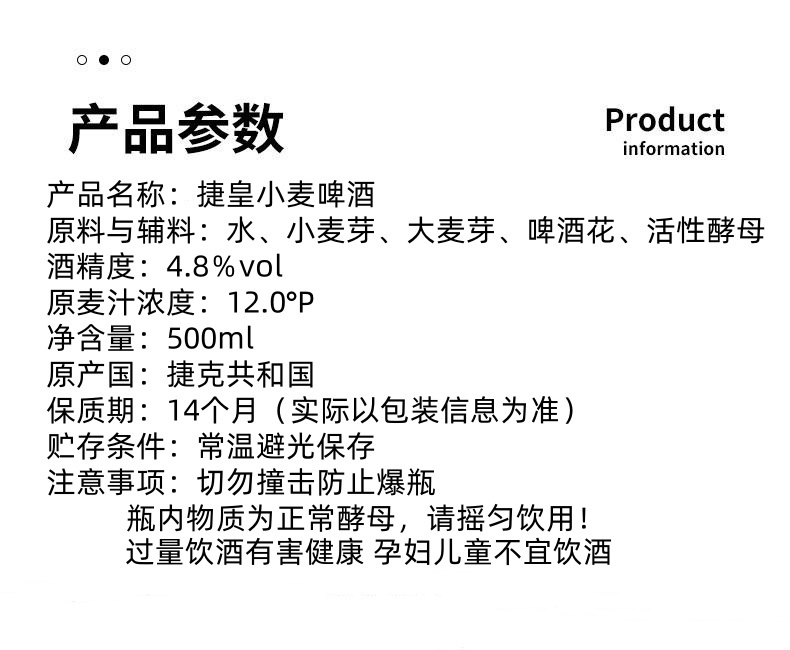 捷克进口捷皇小麦啤酒500ml(保质期到26年3月)