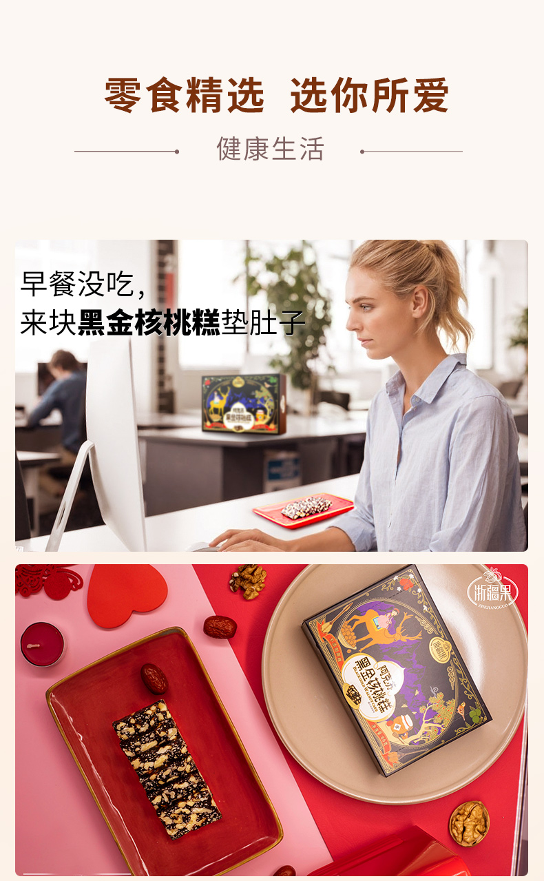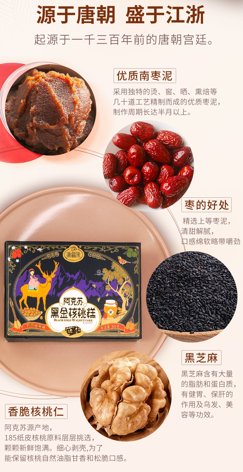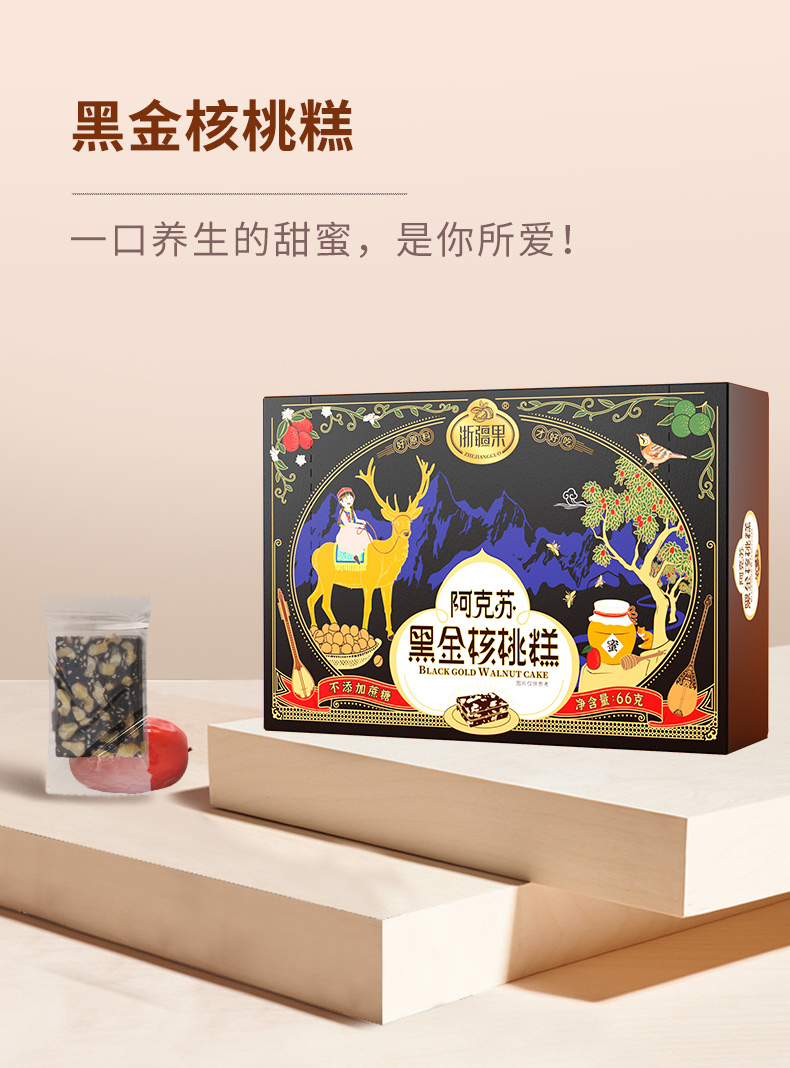 【严选】浙疆果阿克苏黑金核桃糕盒装66克(厂家直发)