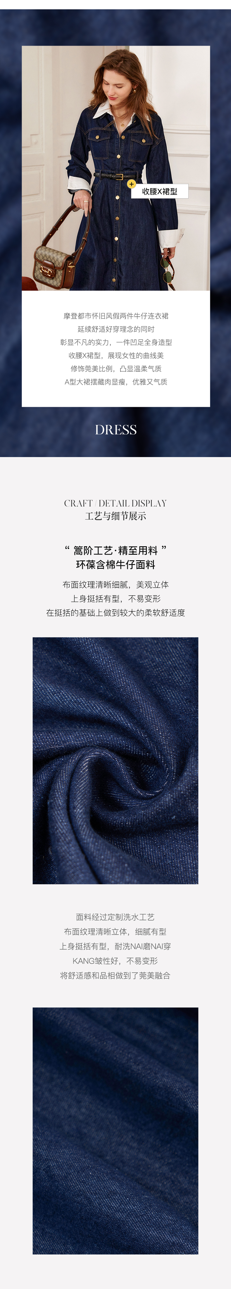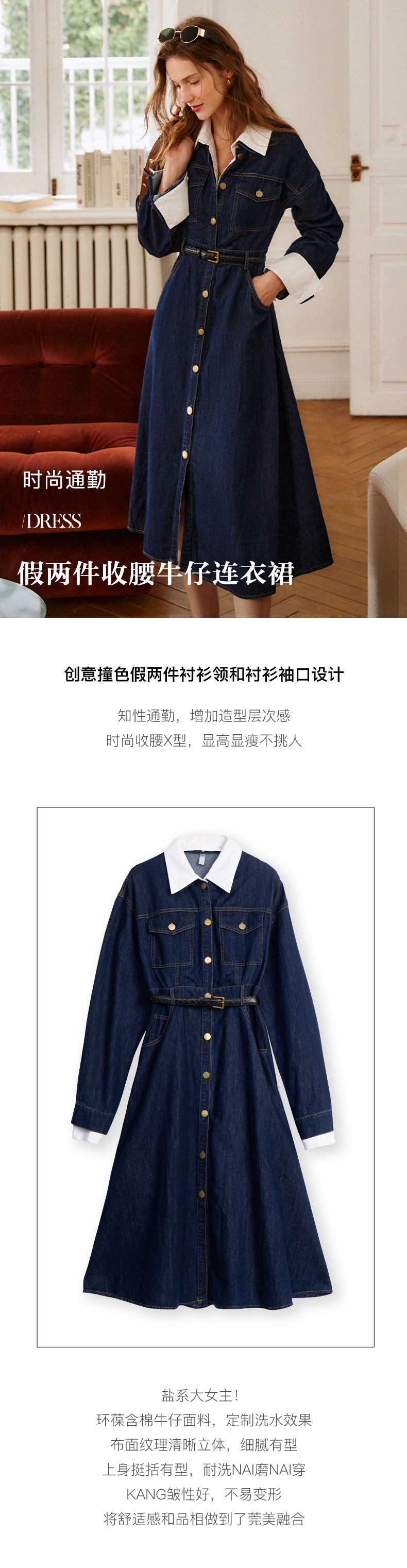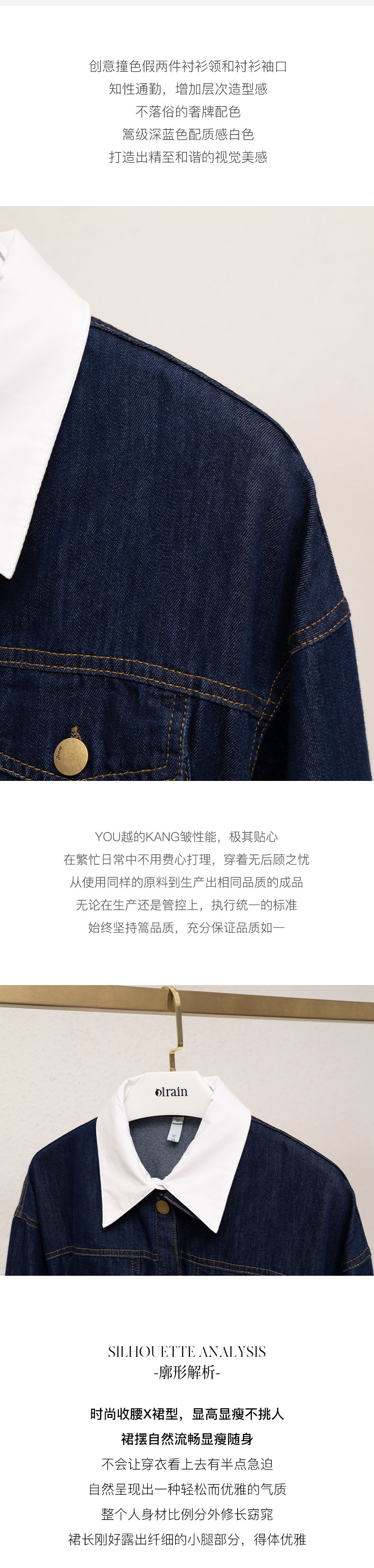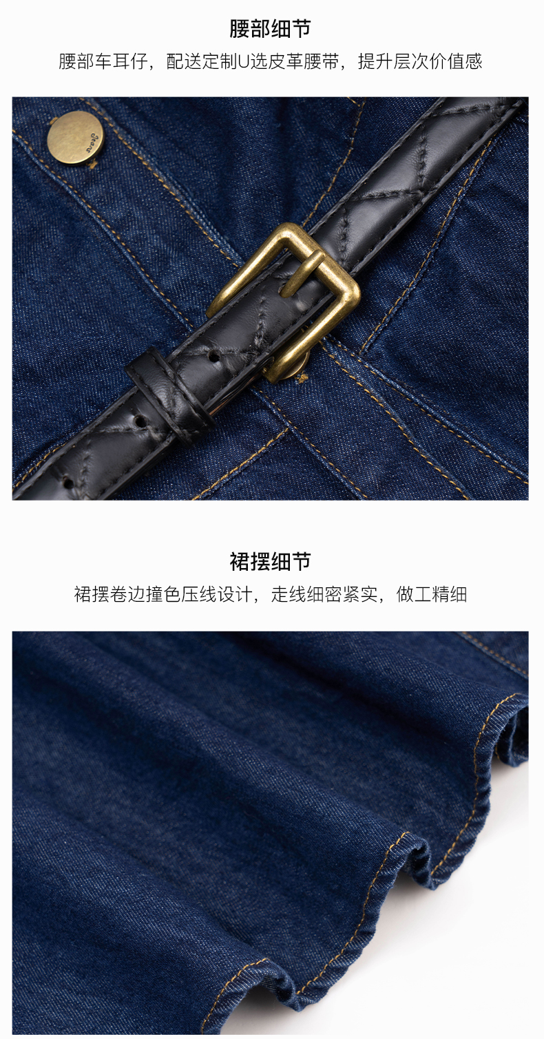 欧芮儿牛仔连衣裙女春季2022年新款法式优雅气质复古假两件裙子
