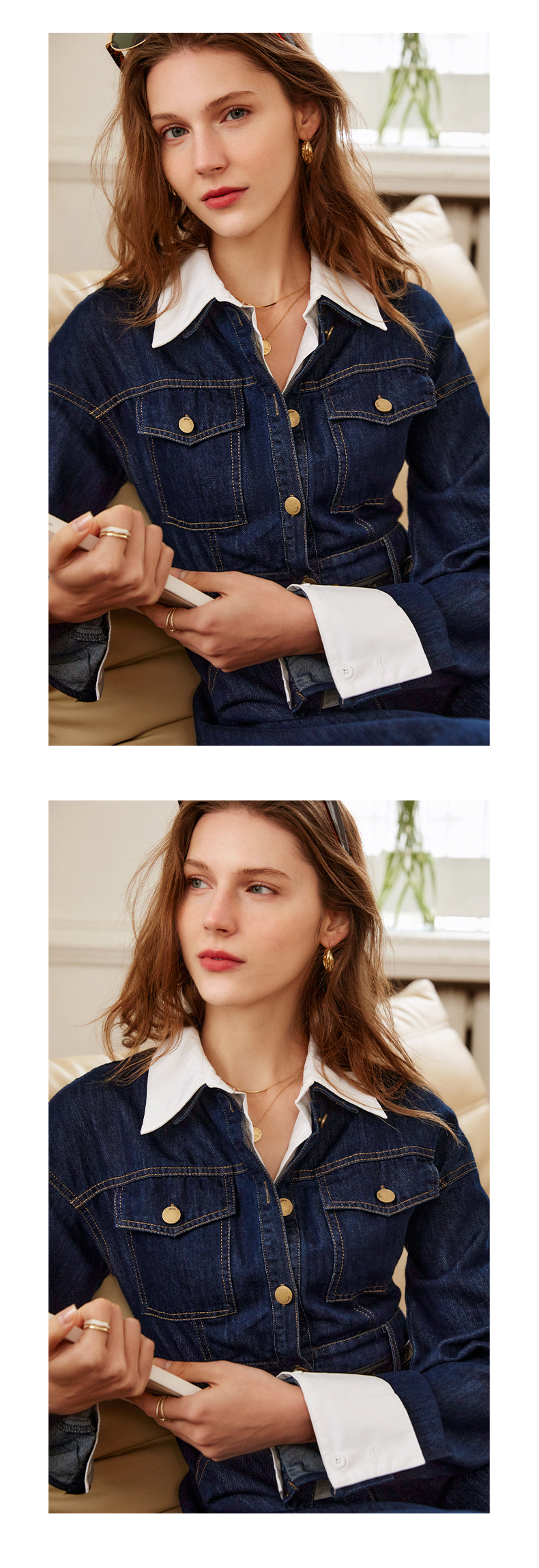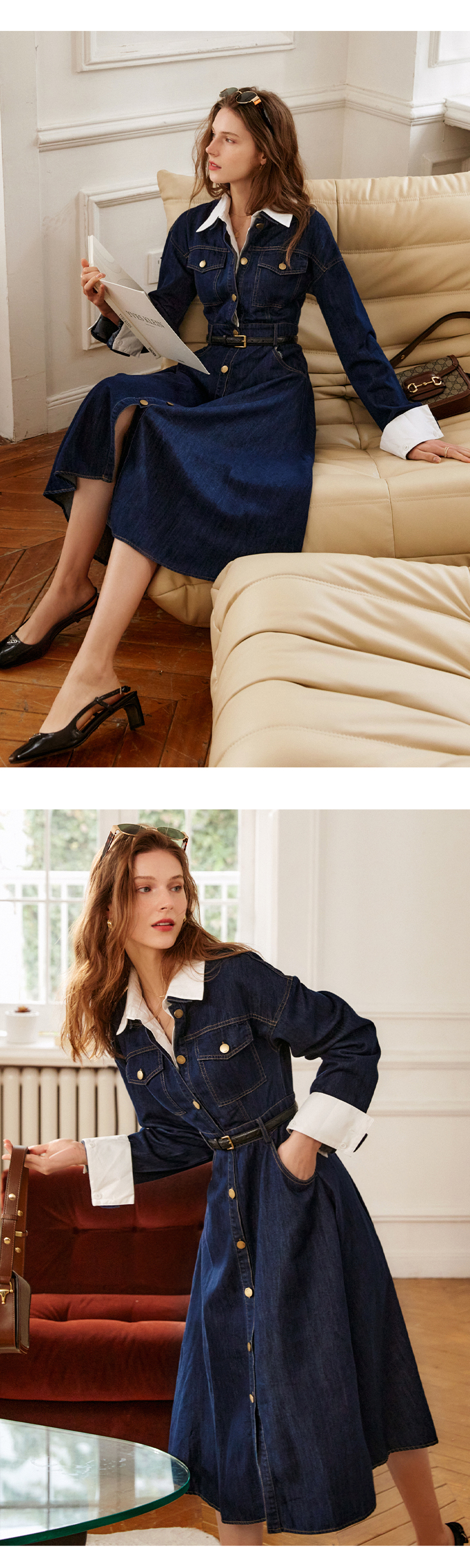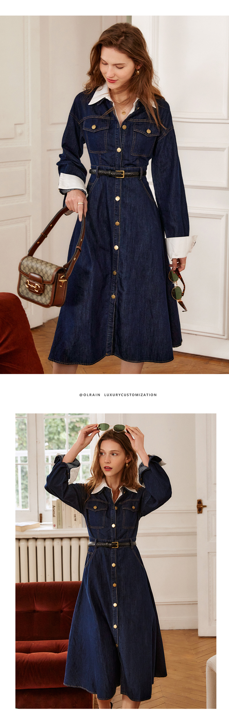 欧芮儿牛仔连衣裙女春季2022年新款法式优雅气质复古假两件裙子