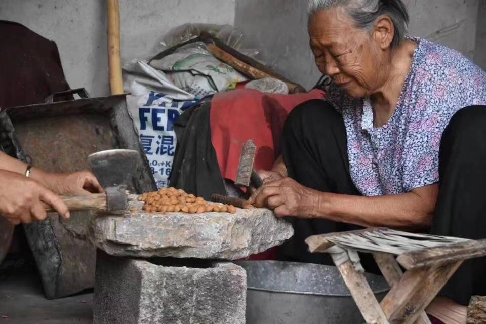 等到山杏成熟,老人家们会挑着担子有的骑着驴子去山里打杏,然后运回家把杏核中的杏仁一个个敲碎用手剥出来。