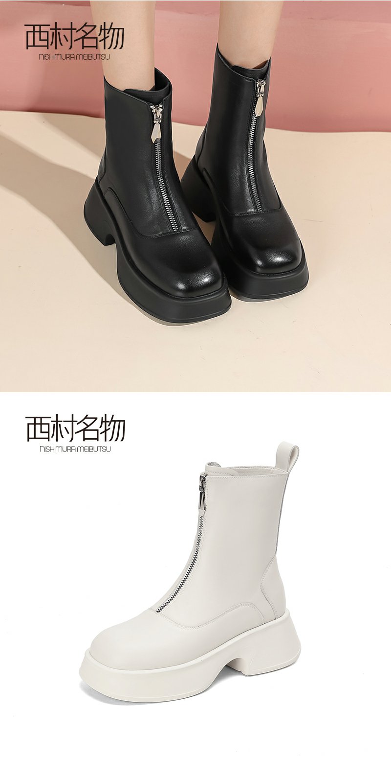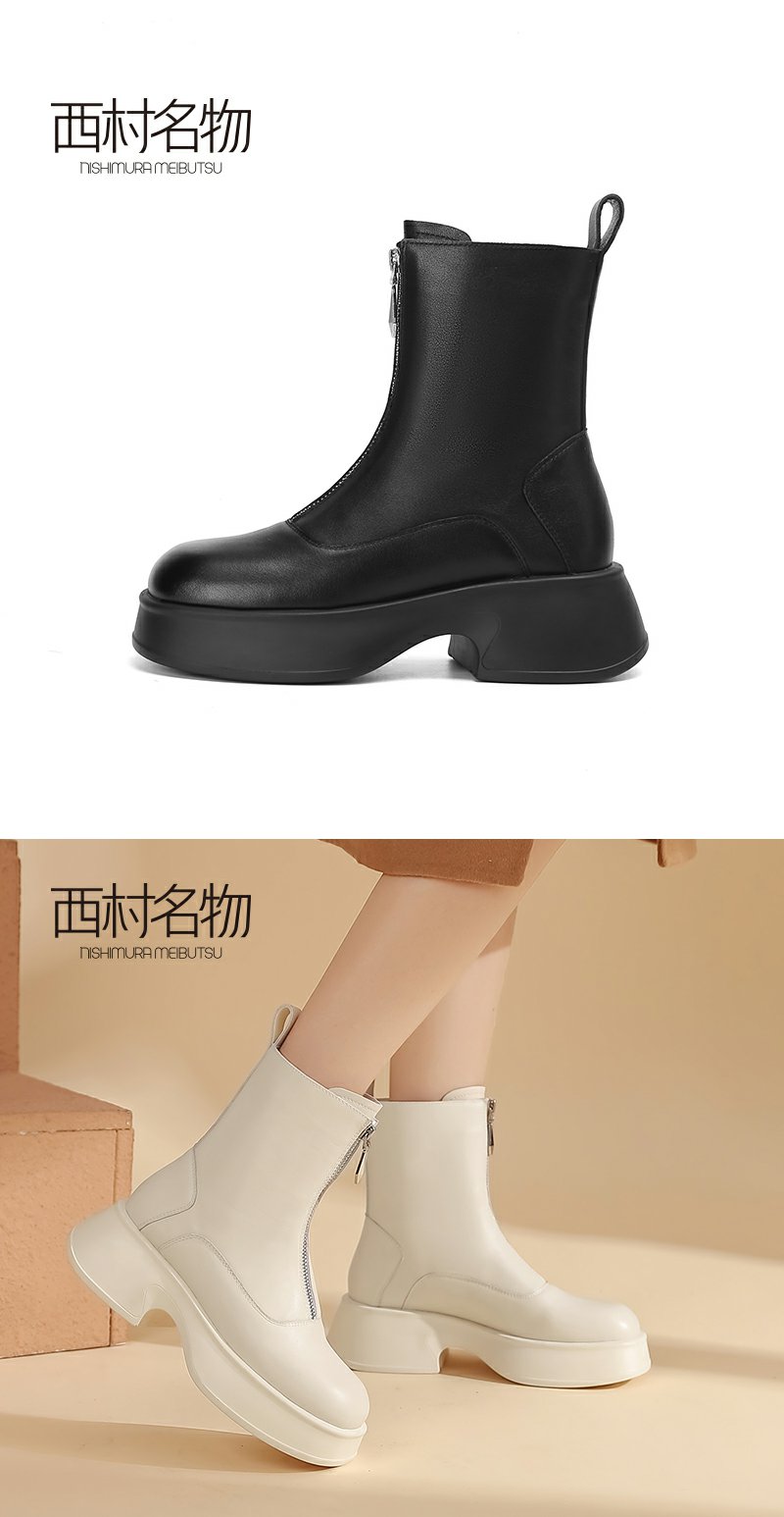 西村名物前拉链休闲靴女2022冬季靴子新款商场短靴厚底皮靴44991
