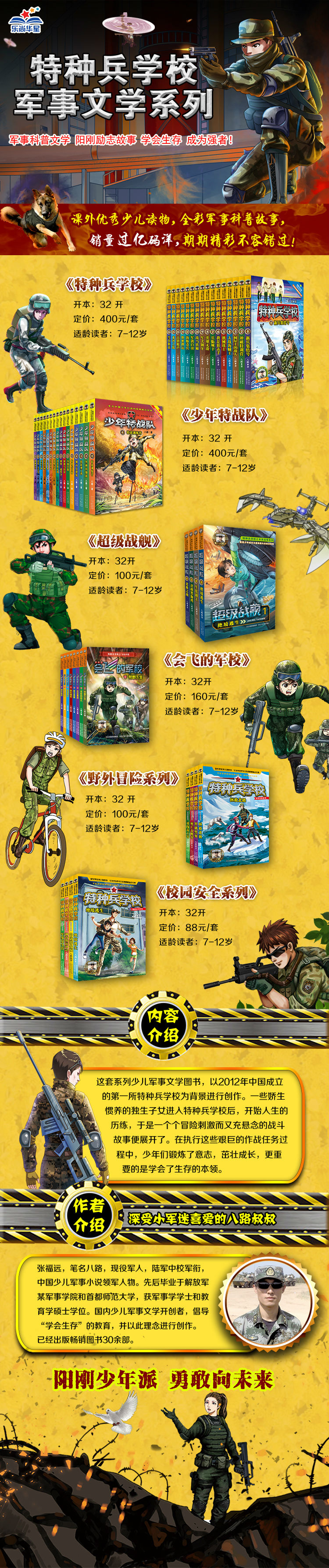军旅题材的少儿读物凭借令人热血沸腾的画面感和动作的真实感赚足了小读者的眼球。军人与生俱来的热血、责任和使命感,与妙趣横生的战斗经历完美地融合在一起,成就了这类作品独特的魅力。