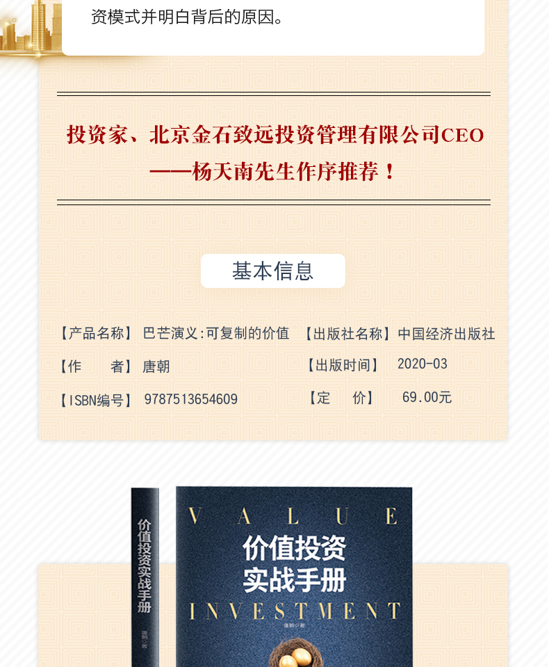 【官方旗舰店】 价值投资实战手册+巴芒演义 可复制的价值投资 唐朝著 股票金融投资理财估算内在价值投资理财书金融股票投资之术