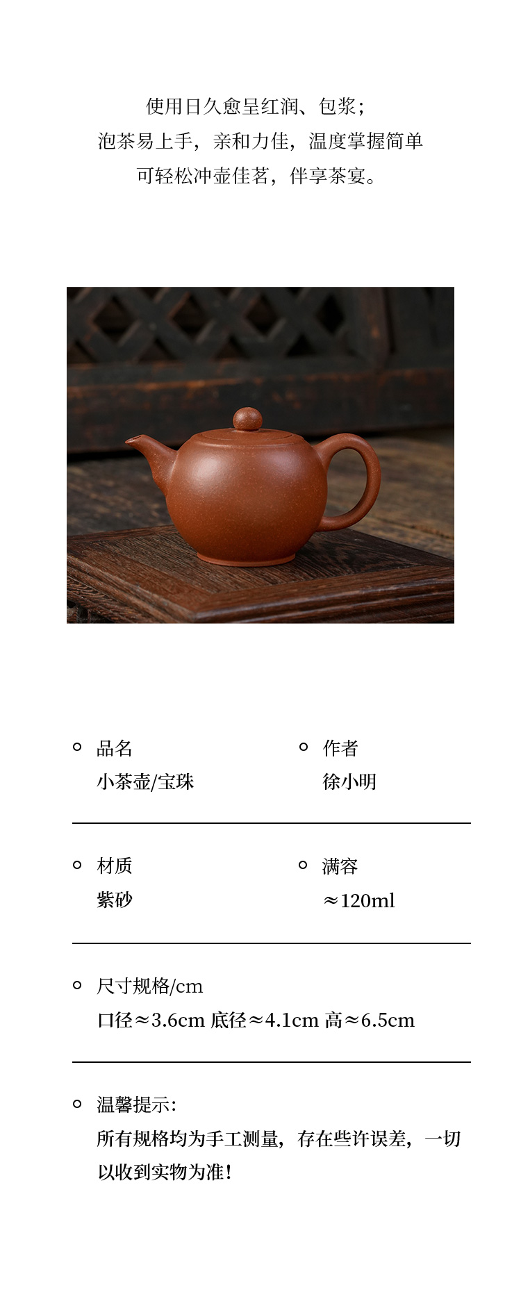 徐小明制 宝珠壶 紫砂壶小茶壶宜兴紫砂原矿茶壶紫砂壶功夫茶泡茶壶紫砂茶具仿古