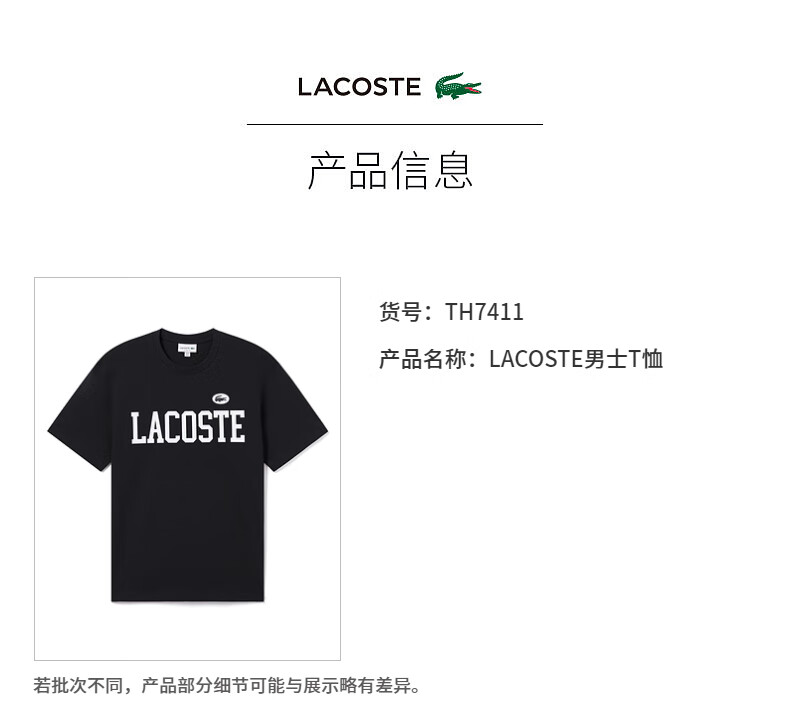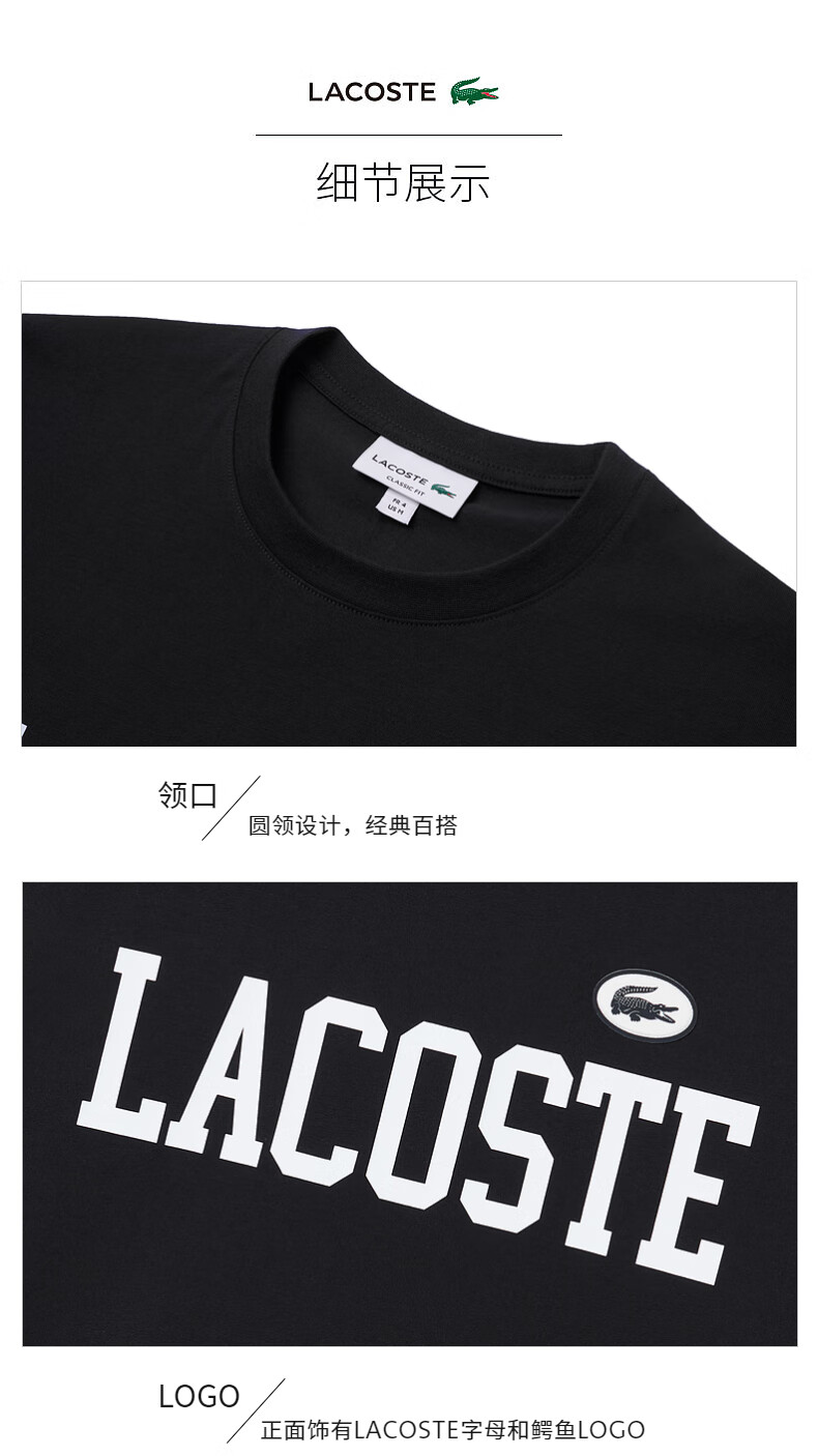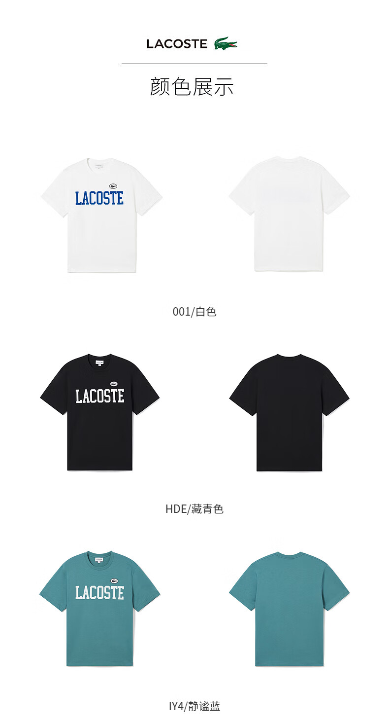 Lacoste法国鳄鱼男装 新款简约休闲纯棉短袖时尚百搭T恤TH7411-98