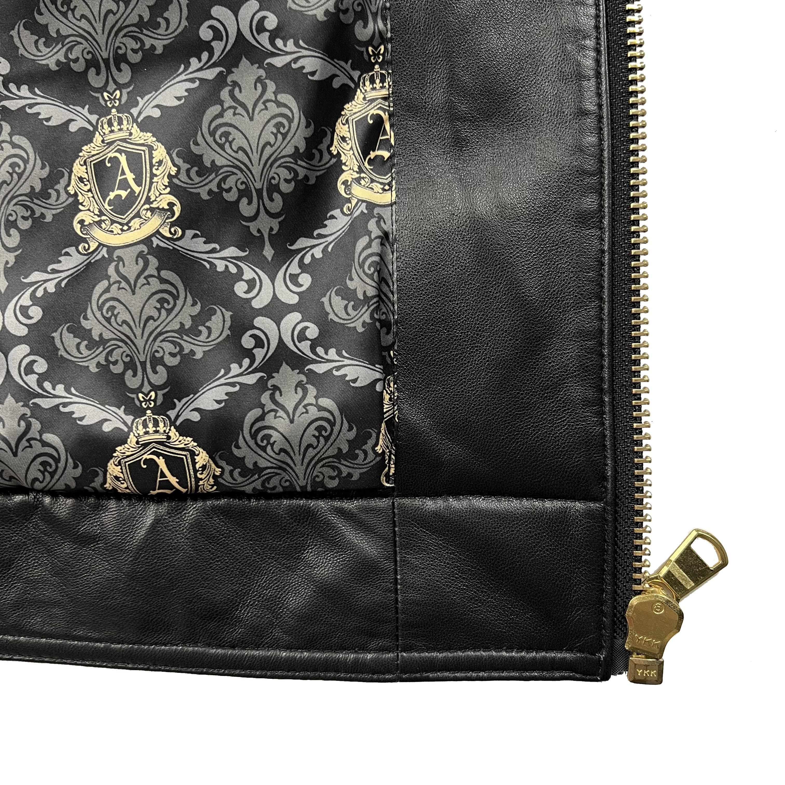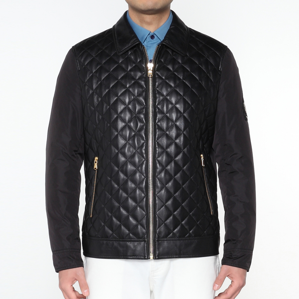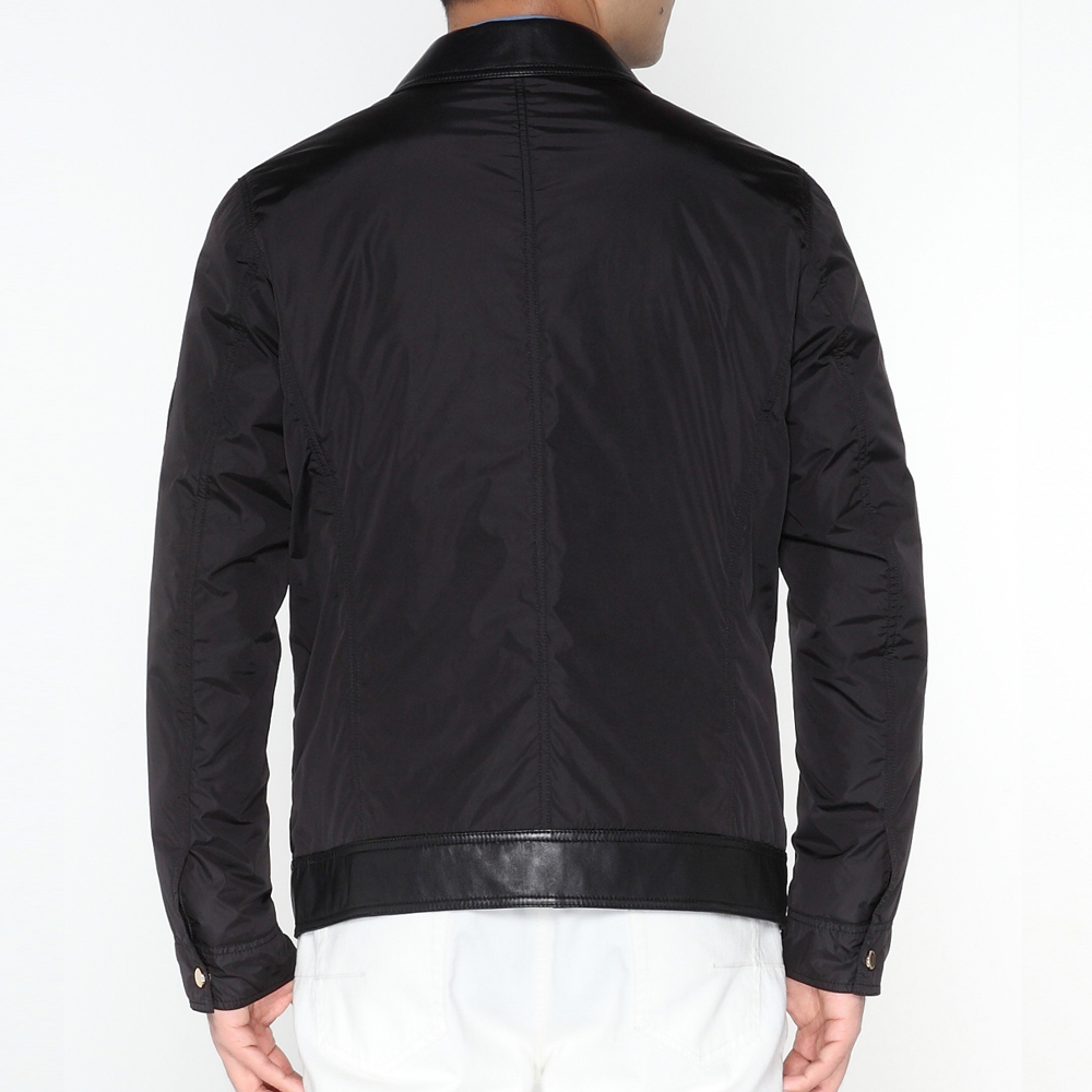 Marco Azzali 黑色翻领拉链皮衣 L3907200