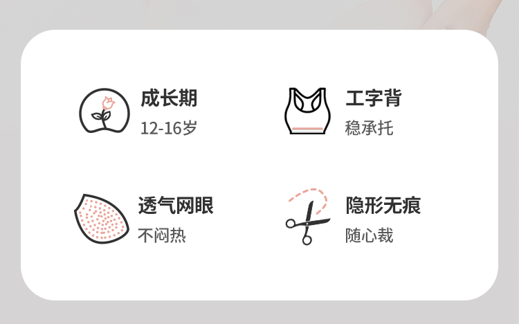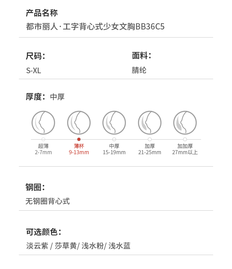 都市丽人少女三步优选内衣无尺码薄背心式泳布文胸无排扣无钢圈BB36C5