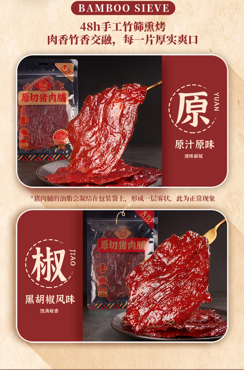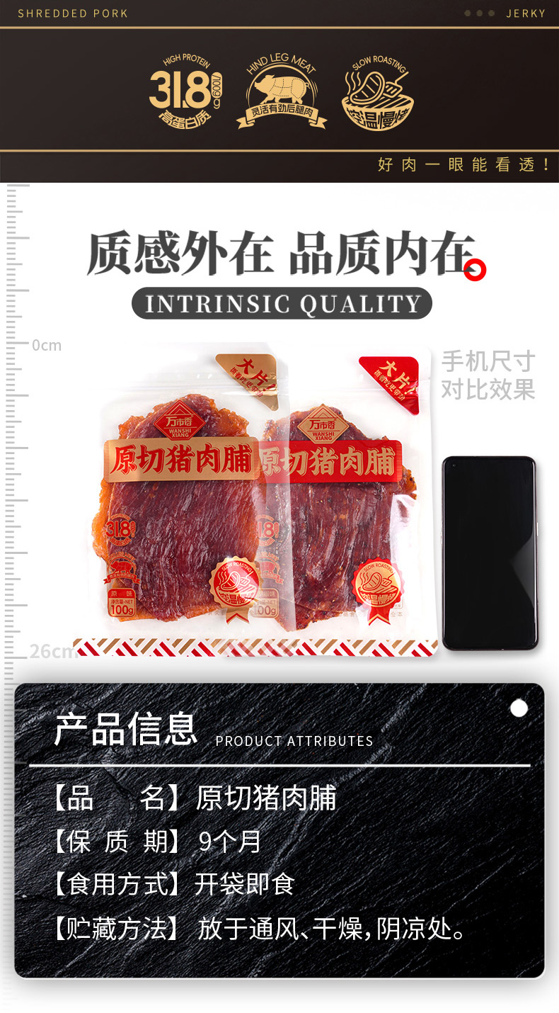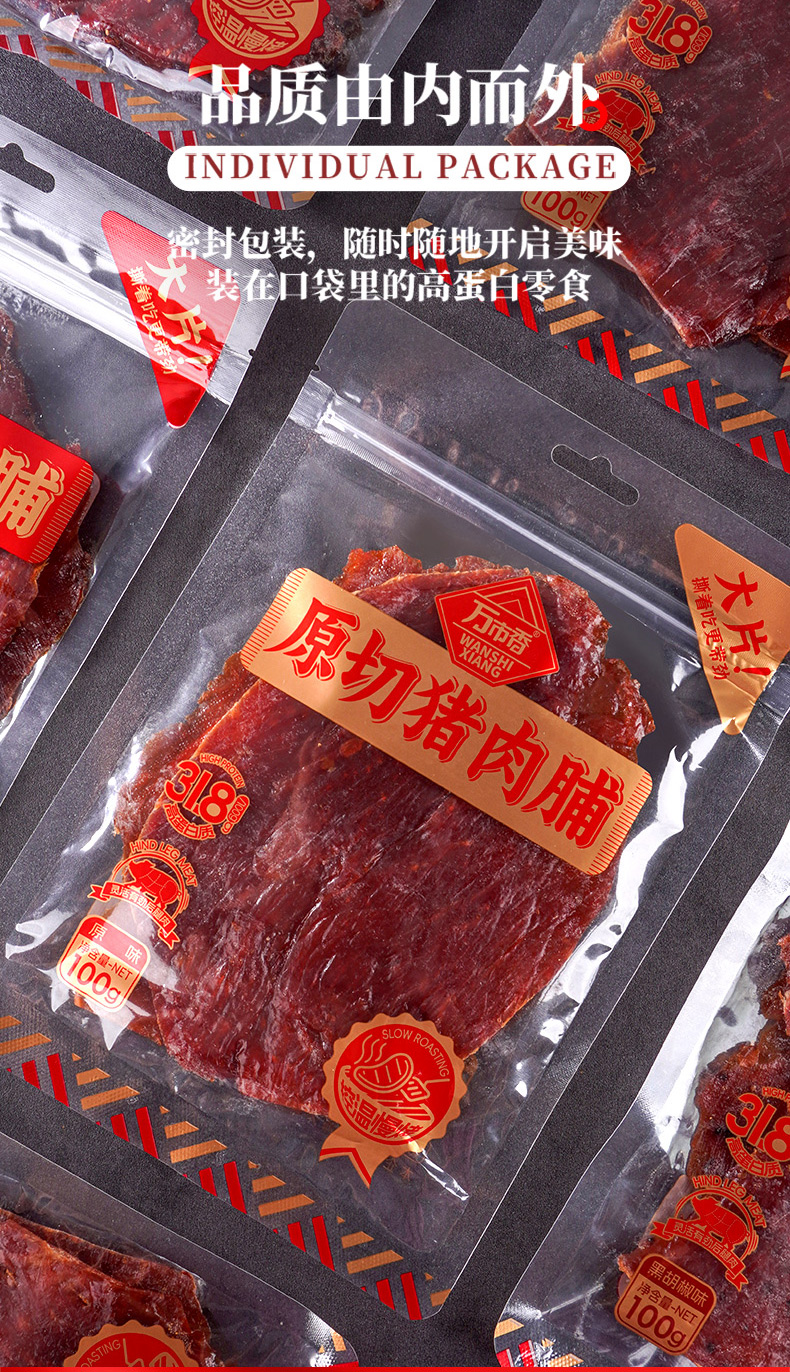 万市香大片原切猪肉脯-原味(100g/包)生产日期: 7月23日
