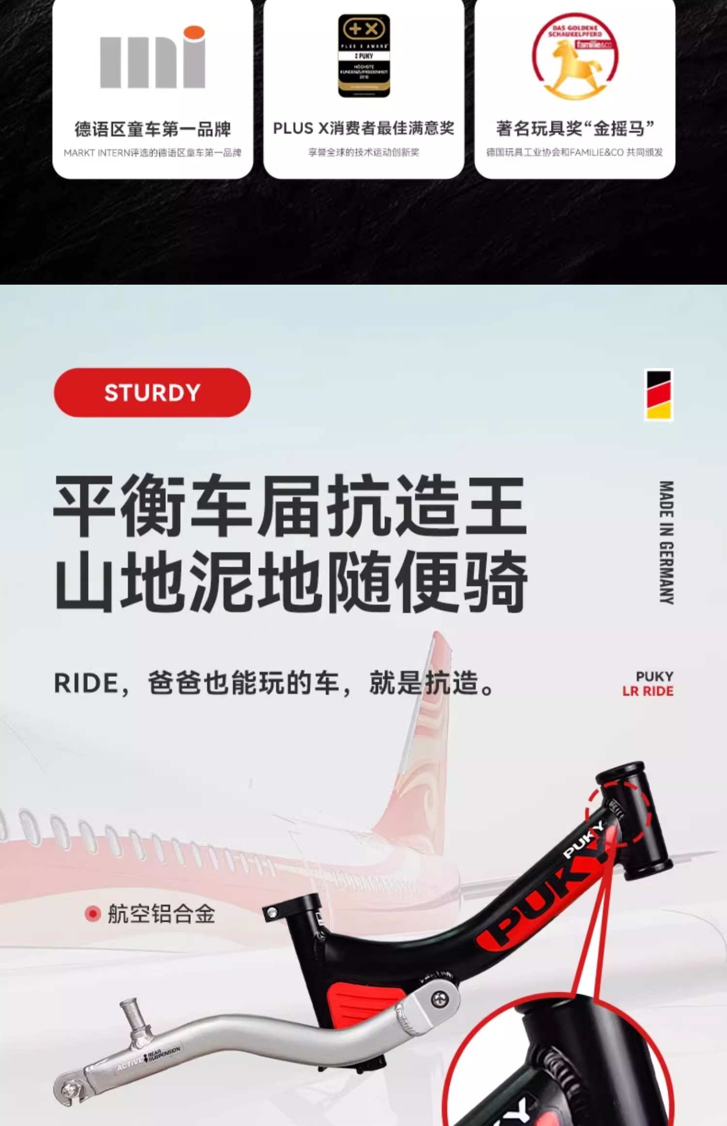 PUKY平衡车Ride限量版PK1721黑色(德国产)儿童平衡车专业竞速赛事3-6岁