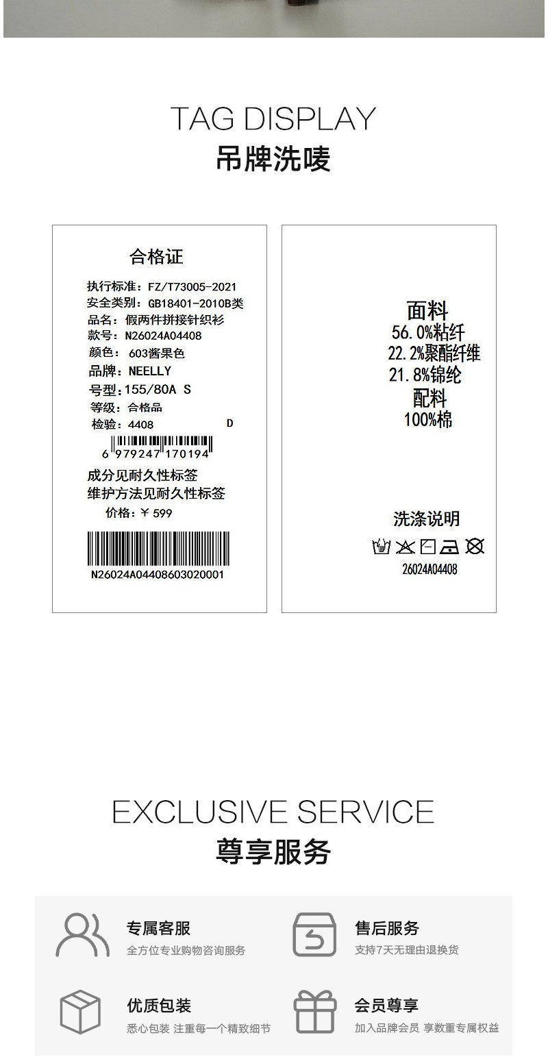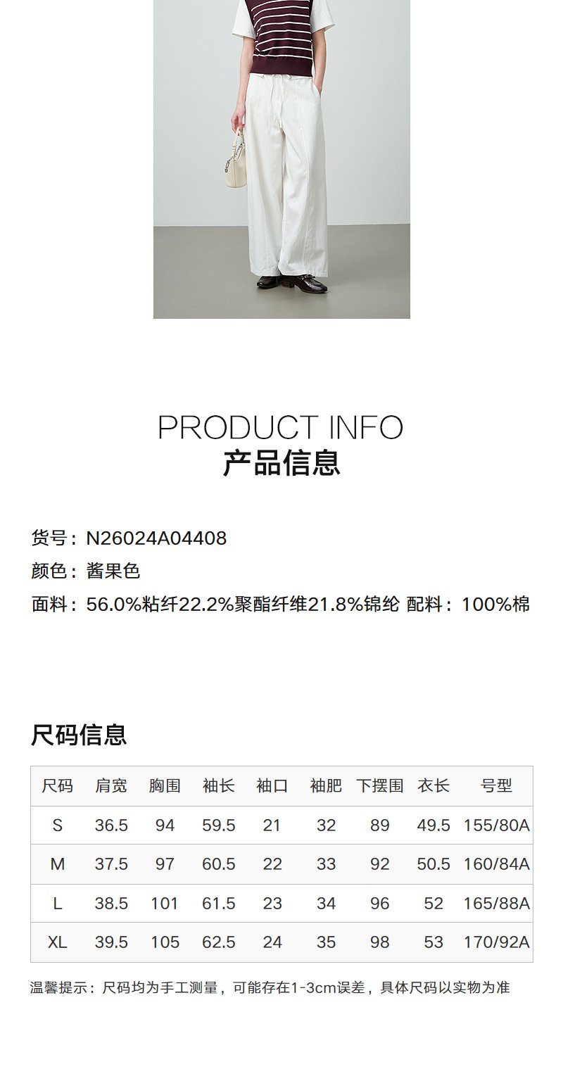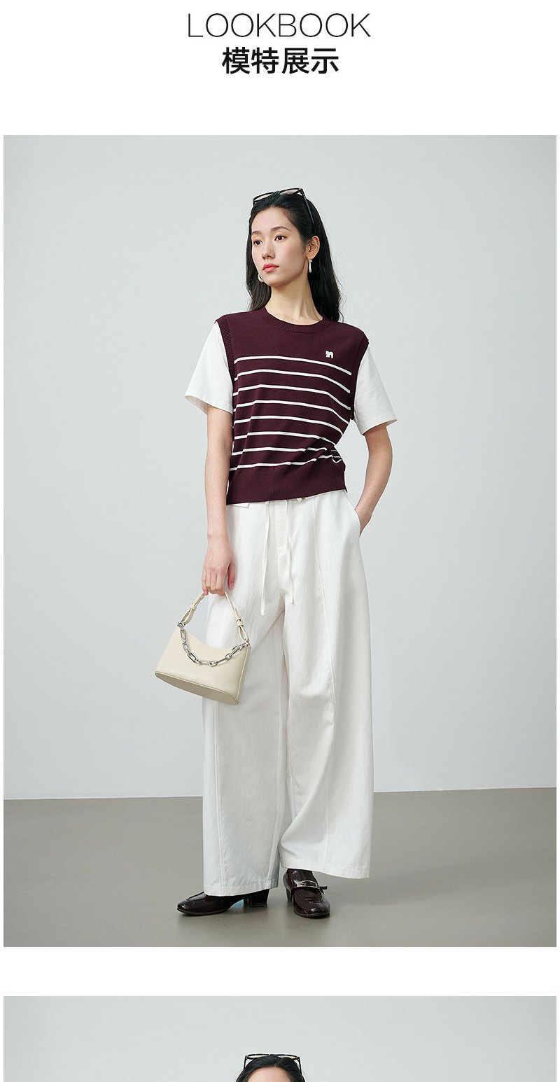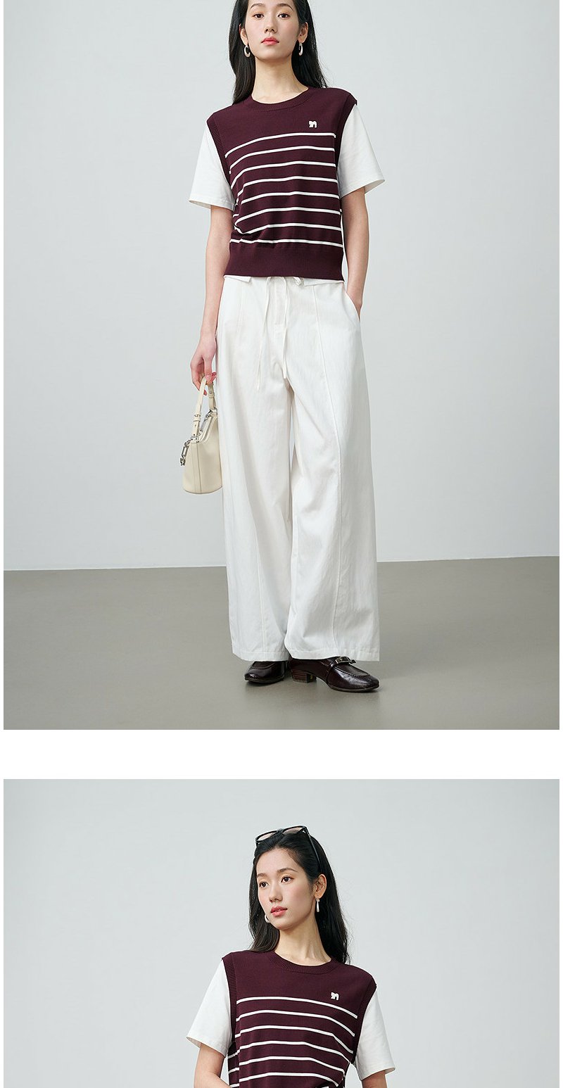 NEELLY纳俪商场同款春新款休闲假两件针织短袖女简约撞色随性上衣N26024A04408