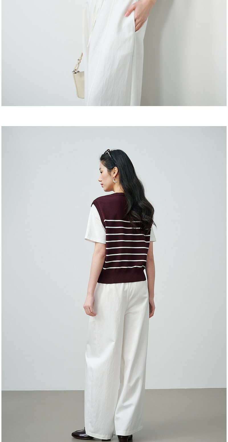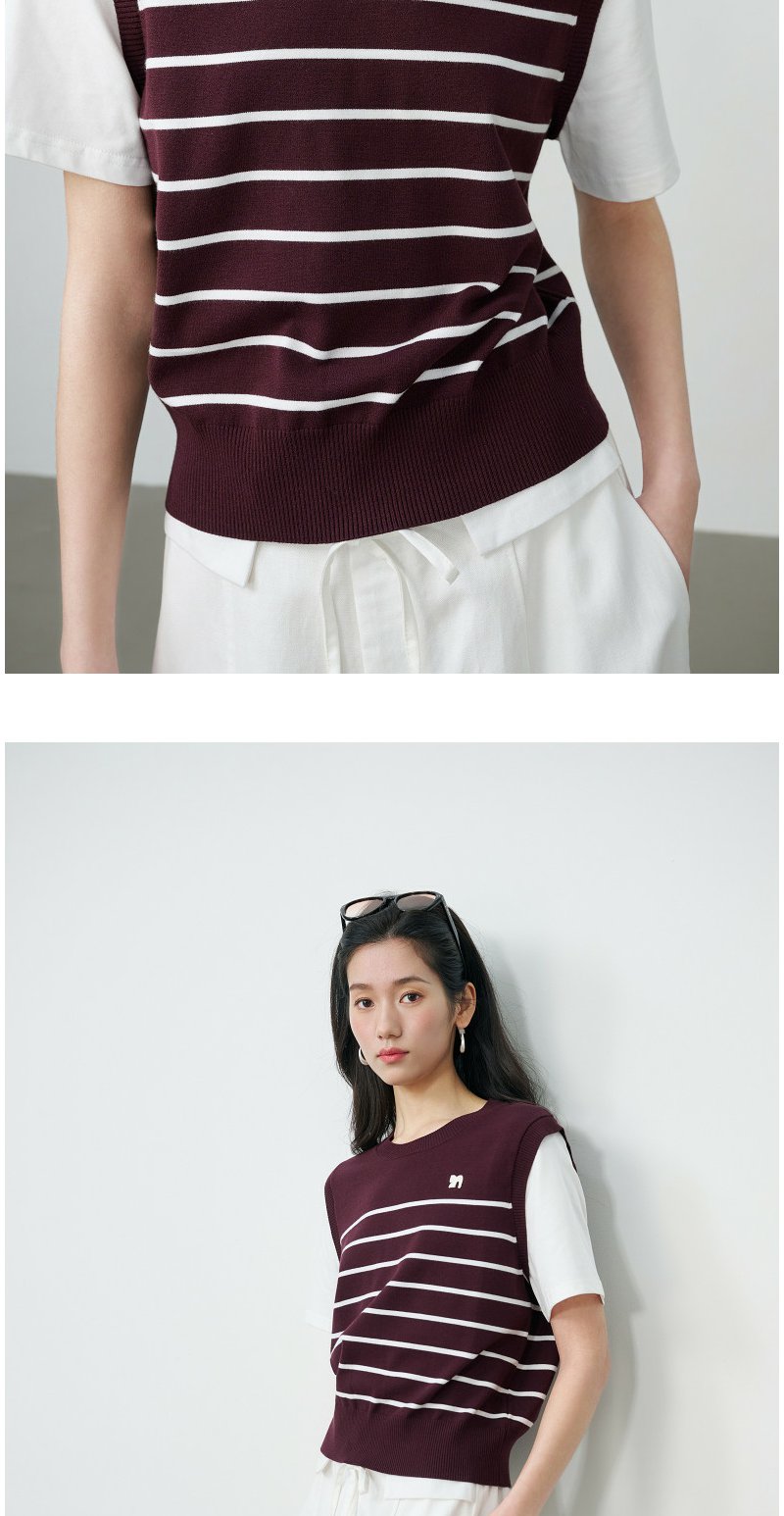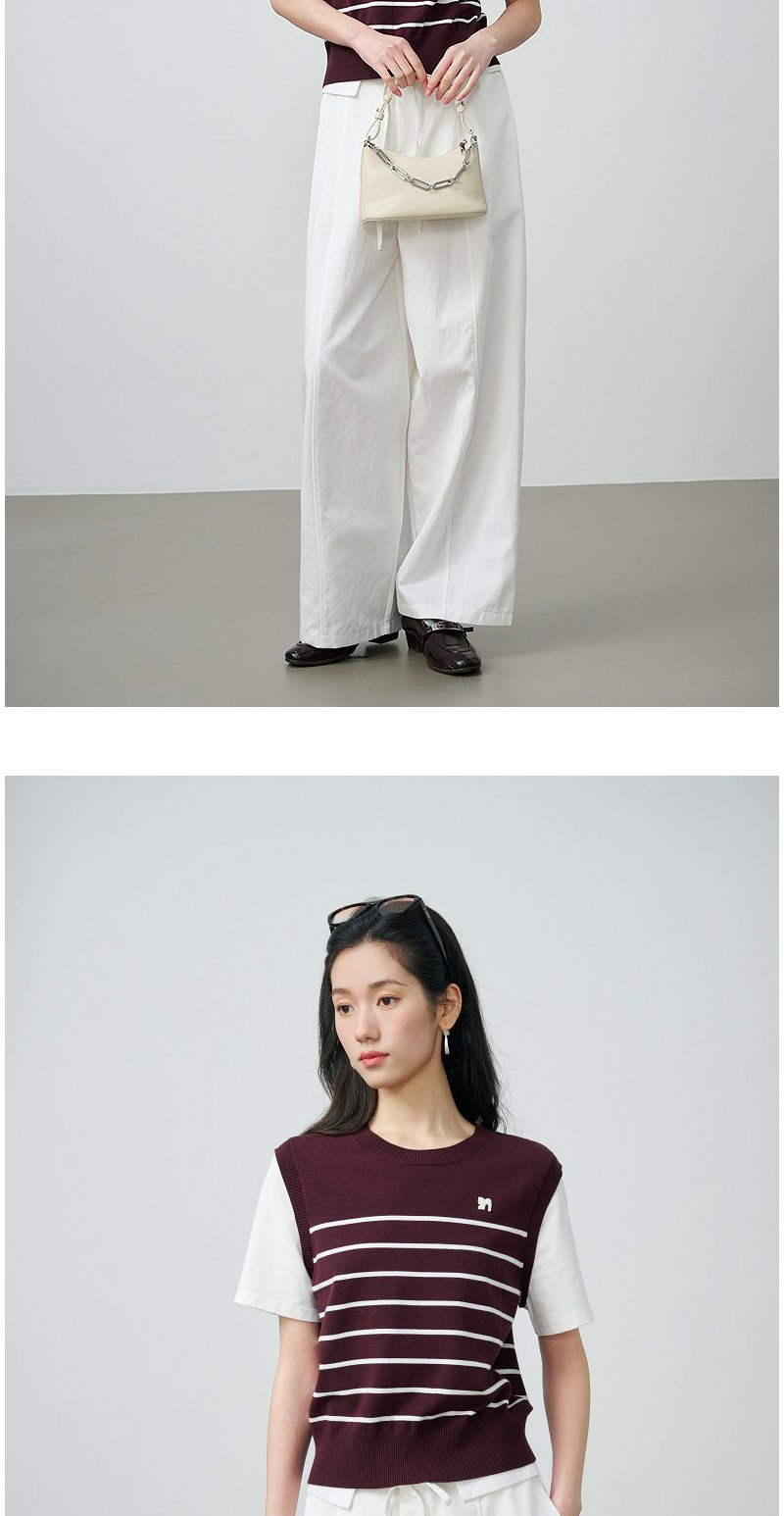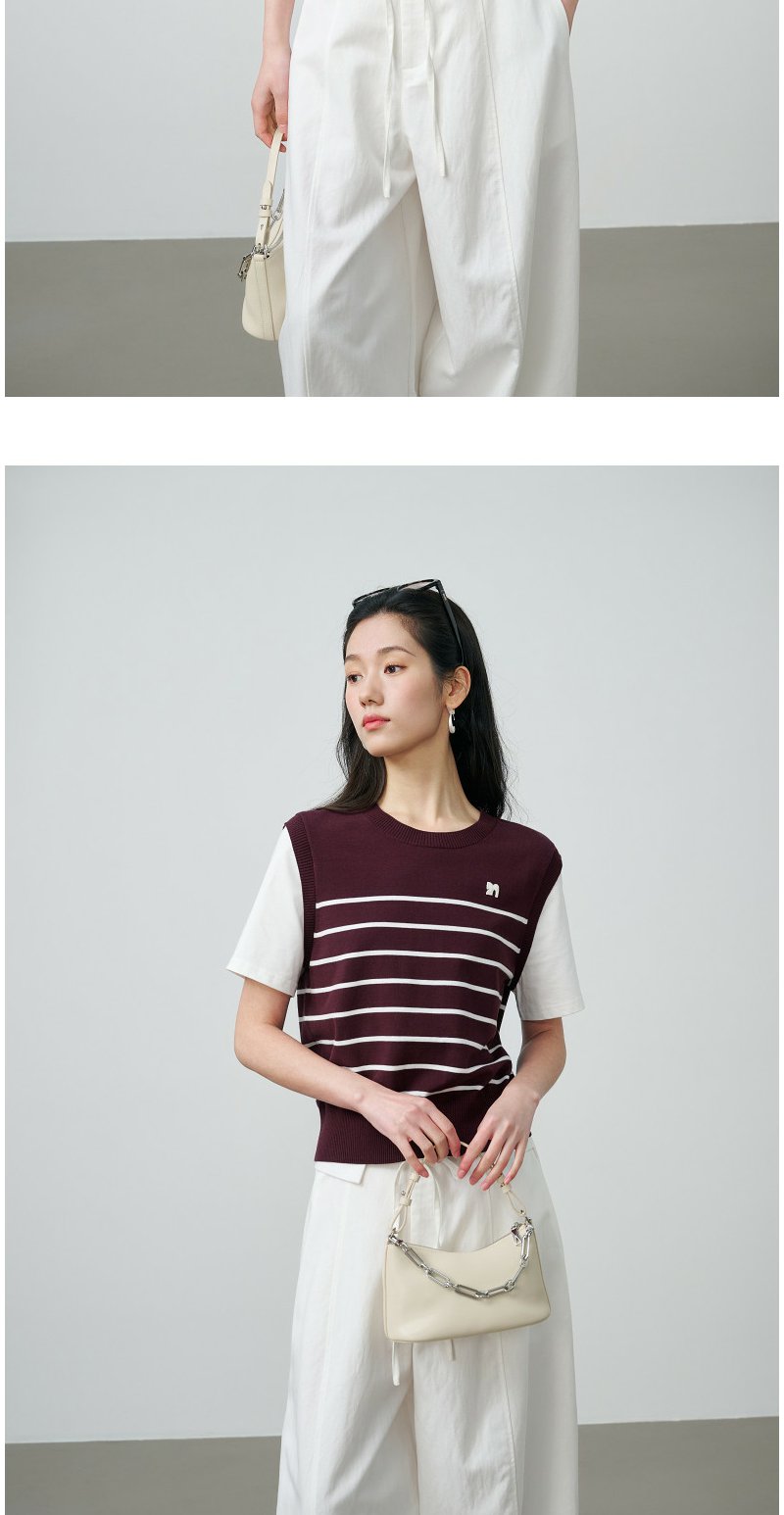 NEELLY纳俪商场同款春新款休闲假两件针织短袖女简约撞色随性上衣N26024A04408