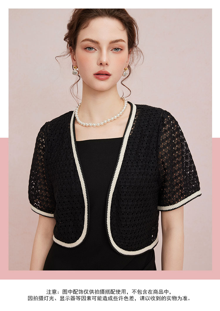 QF101斯尔丽2025夏季新款蕾丝外搭披肩小衫撞色边宽松百搭开衫空调衫