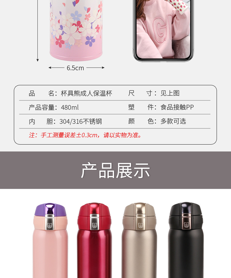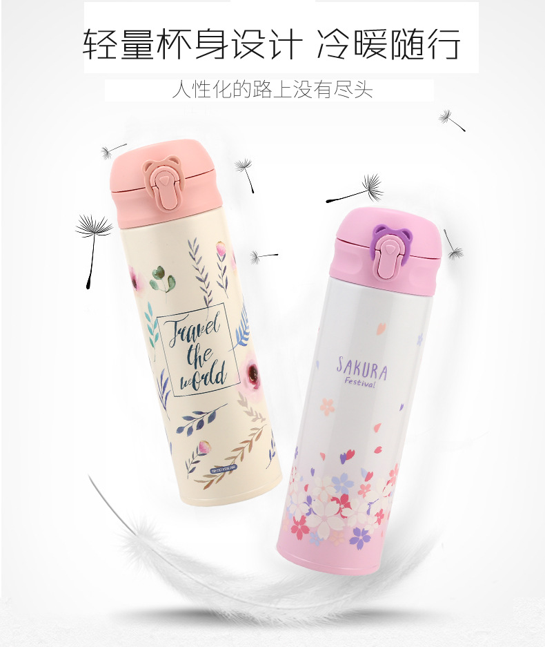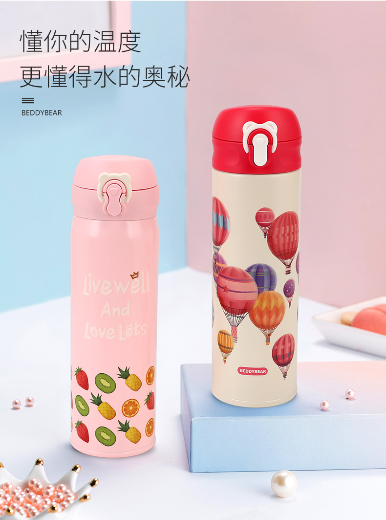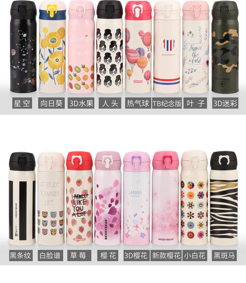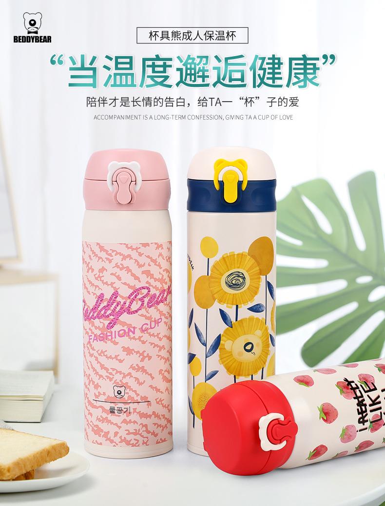 杯具熊大人樱花保温杯女士成人水杯牛油果黑白脸谱高颜值情侣直饮